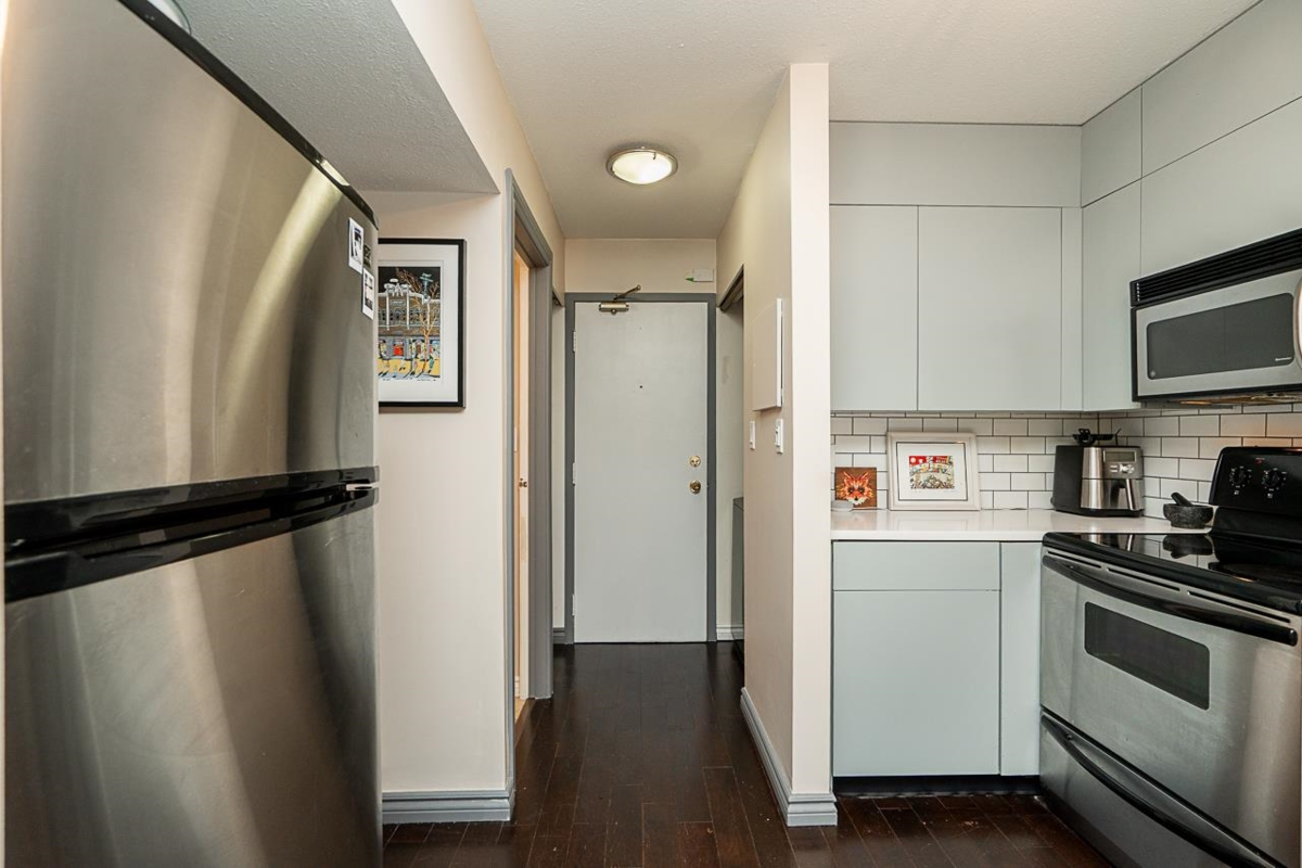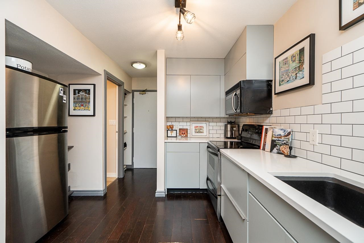 Welcome to this great 1 bed 1 bath Nicely updated Fully rainscreened perfect for entertaing unit. S/S appliances, New quartz counter tops, New backsplash, New Washer/Dryer, Newly painted, Walk in closet, office space and last but not least, almost 250sqft of private outdoor space. Enjoy the outdoors all year round with a peekaboo view of the ocean. Rainscreened in 2004 (Hardi Plank and Vinyl) this building is in great shape. Situated on a peaceful quiet street and in walking distance of Restaurants, cafes, shopping and parks. Parking, Storage but No dogs. Don't miss out as this is one of the special ones.