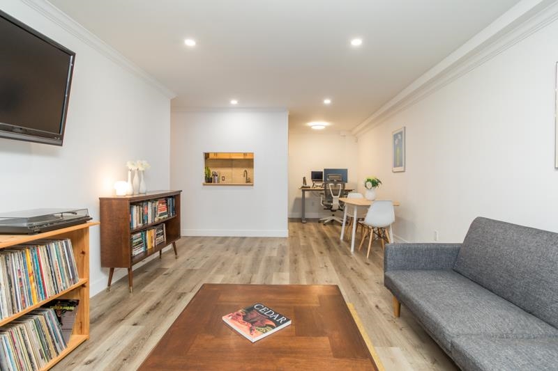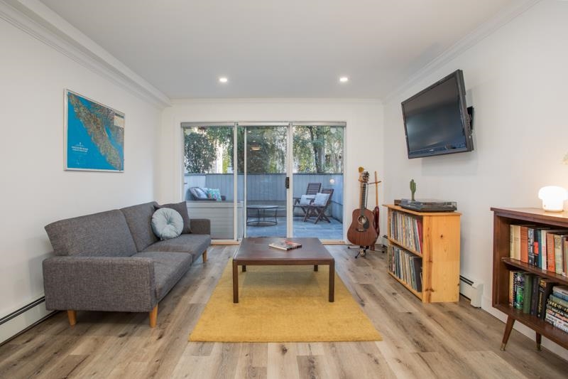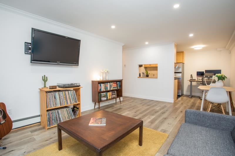 One bedroom ground-level unit in ultra-convenient Downtown New West. Renovated top to bottom. Literally - look up to see those smooth ceilings and crown molding. Updated flooring, modern lighting, kitchen and bathroom. Big and bright living room leads to a spacious southeast-facing patio, ideal for gardeners, sunseekers and your furry friends. Pet friendly building. Keep up to 2 pets with no size restriction on dogs. Long list of building updates includes: roof 2010, re-piped 2015, boiler and exterior paint 2018, elevator 2020. Maintenance fee includes heat and hot water. Downtown convenience. Solid building. Move-in ready home.
