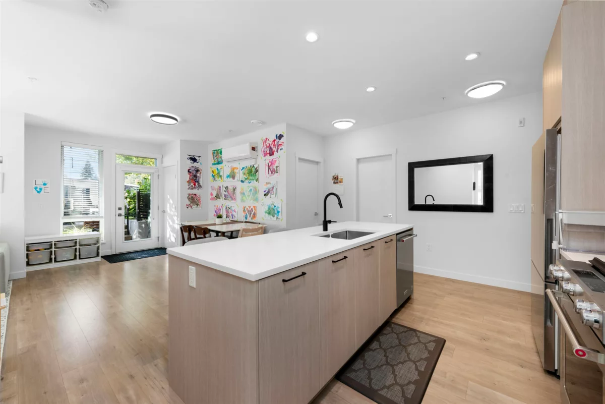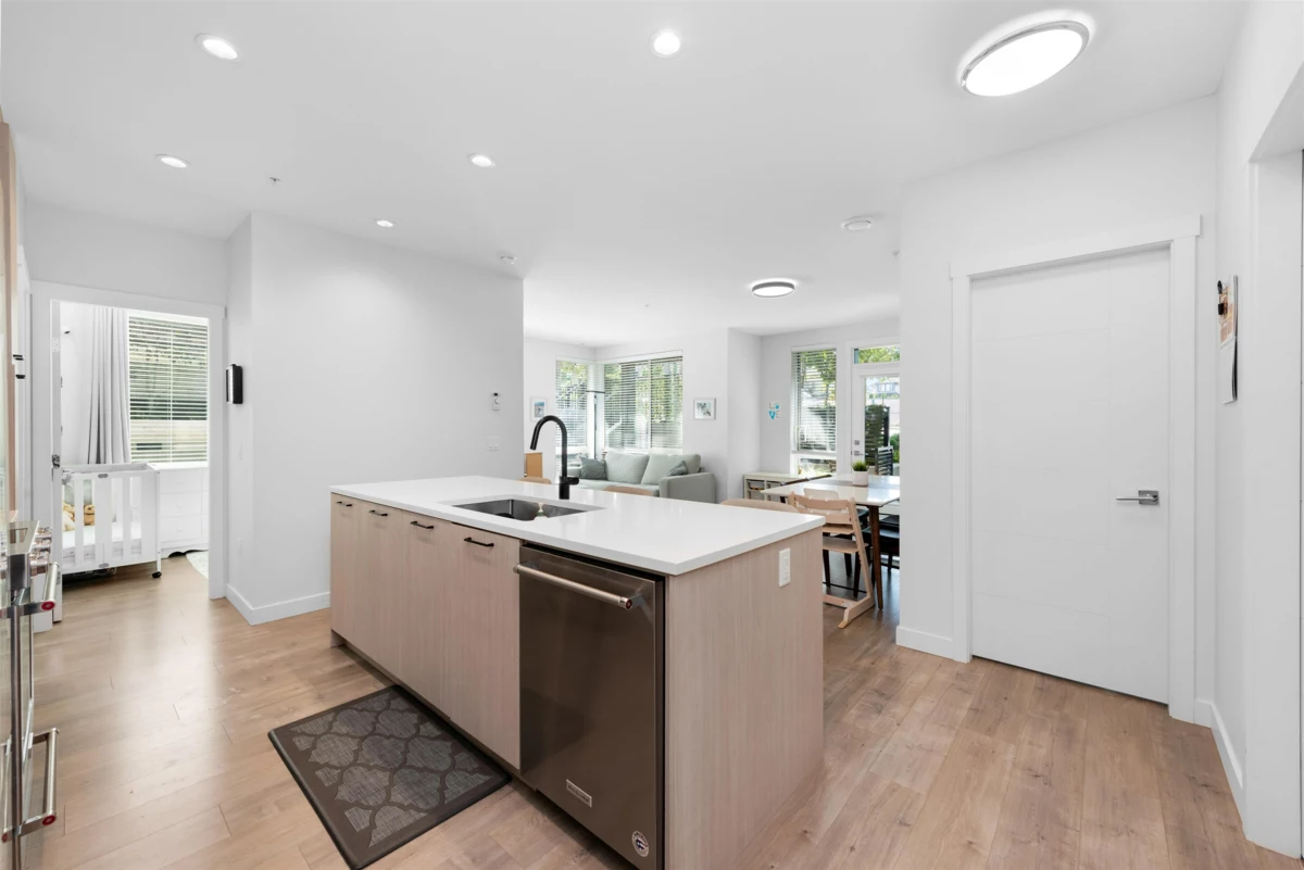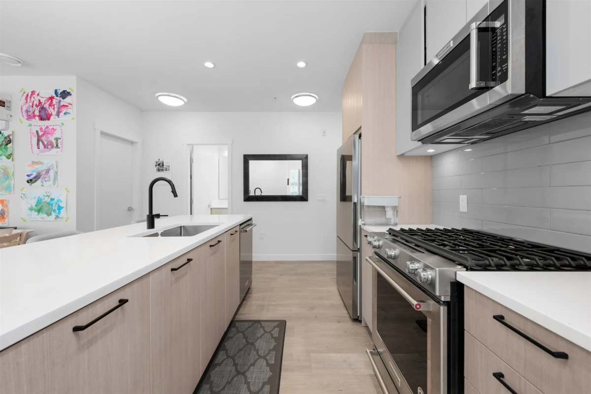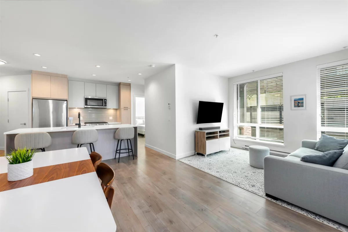 Ground-level CORNER home in the sought-after DUET development by ADERA. This bright 3 Bedroom, 2 Bathroom home with CLT Construction offers a functional layout with an open-concept living and dining area, perfect for modern living. The kitchen features high-quality finishes, Kitchenaid premium stainless appliances, Quartz Countertops and plenty of storage. Enjoy comfort living indoors with A/C indoor and outdoor living with a spacious patio ideal for relaxing or entertaining. Amenities; Roof Top terrace w/ BBQ, Lounge w/ kitchen and Fitness Center. Conveniently located just steps away to Burquitlam SkyTrain, shopping, schools, YMCA and parks, this home comes with 1 Parking and 2 lockers!