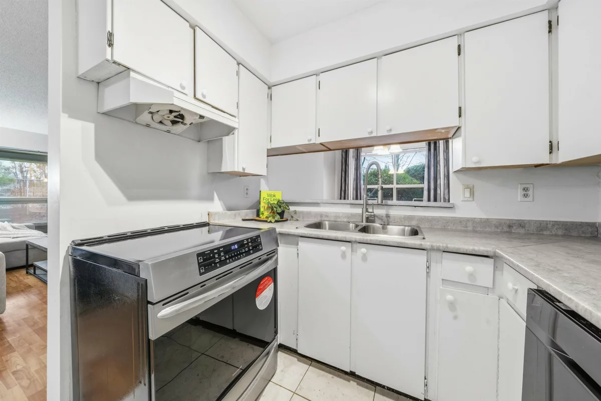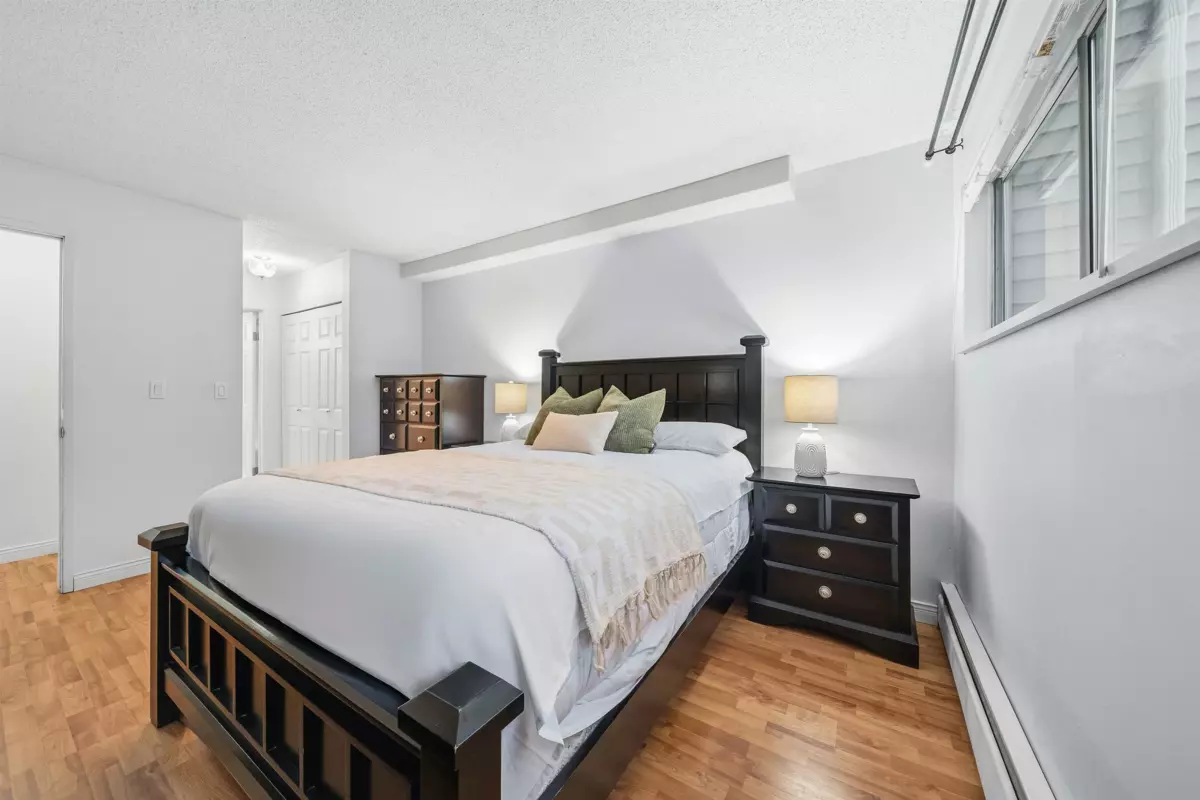 BEST VALUE FOR A 2-BEDROOM HOME IN WEST COQUITLAM. This spacious 982 sqft ground-floor corner unit offers an exceptional living area and functional floor plan. This home features an extra-large primary bedroom, in-unit storage/den area, and a covered patio for year-round enjoyment. The rare and unique wood-burning fireplace adds warmth and charm. Bring your ideas and make this home your own - perfect for first-time buyers, families, or investors. 1 parking stall comes with the home, and there are options to rent extra parking and storage. Prime location just steps to Burquitlam SkyTrain, shopping, restaurants, Miller Park Elementary, École Banting Middle, and parks.