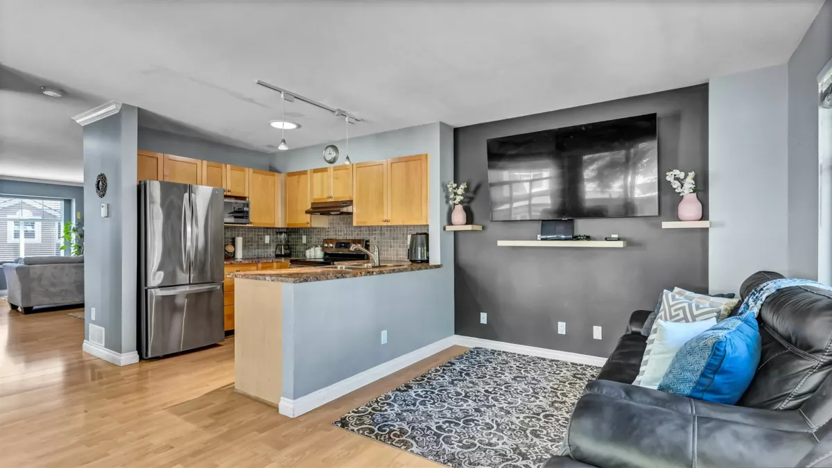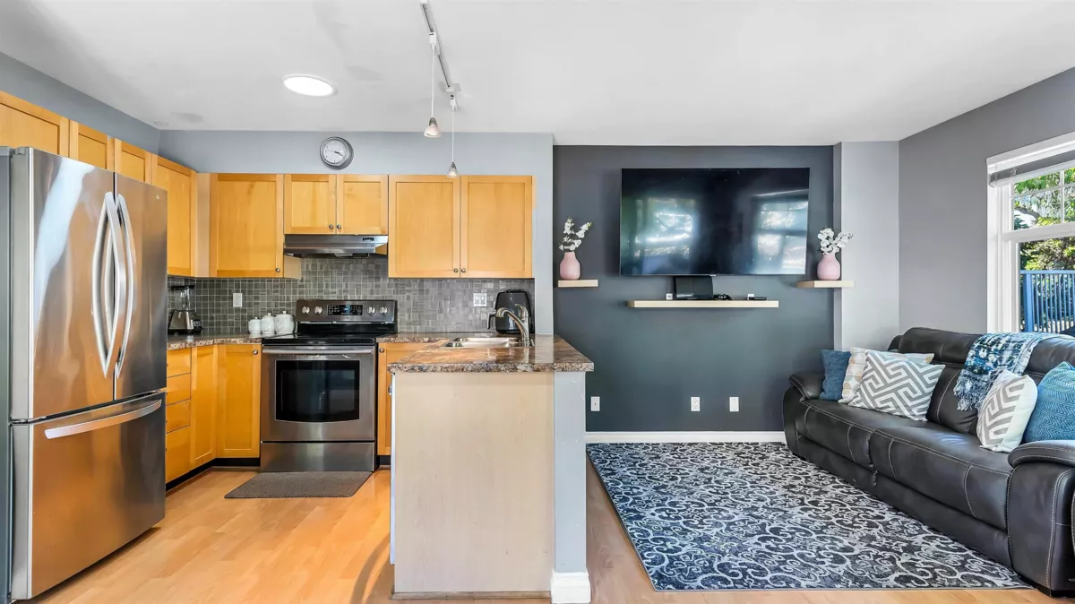 This listing is all about location. Beautifully updated end unit townhome with extra sunlight in a highly desirable central location-perfect for first-time buyers! Enjoy the ease of walkable living with Hospital, Doctor Clinics, Groceries, Coffee Shops, Restaurants, Schools, Parks, and Transit all just steps away. This bright and spacious home features stylish laminate flooring, a sleek modern Kitchen with stainless steel appliances and tile backsplash. Relax on the sunny deck or in your fully fenced private patio/yard. Roof changed in February. Strata allows to build 3rd room and washroom. Located in a quiet, self-managed complex with low fees and a 2-car tandem garage, this home offers the ideal mix of comfort, value, and unbeatable convenience. By appointment only.