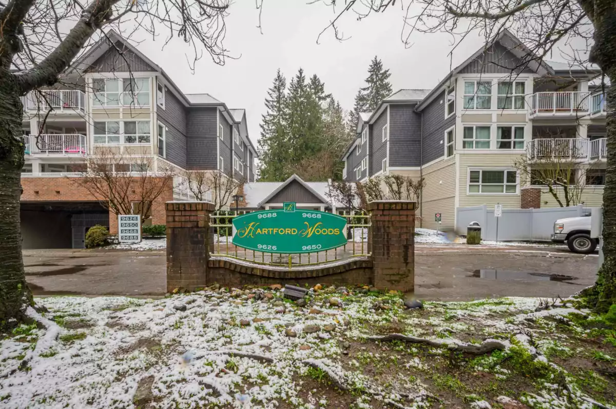 Hartford Woods offers this fabulous 2 bed,DEN, 2bath and 2 underground parking stalls. This ground floor unit features it's own street access and beautiful PRIVATE yard. An ideal place to call home with room for everyone. Building envelope repairs, w/new windows & fencing.Building amenities inc. outdoor pool, amenities lounge,workshop & guest suite.Prime location close to Guildford Mall, Rec Centre, T & T market and steps to Green timbers Park.Quick access to transit and skytrain. Don't wait or you'll miss out! Immediate Possession available.