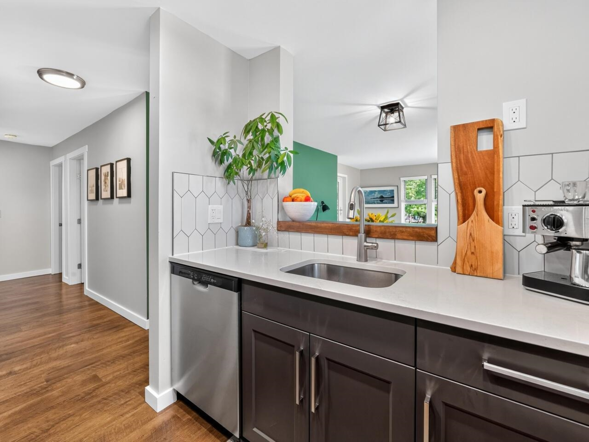 If you've ever been looking for a DECK from the GOD'S, well here it is! This PHENOMENAL two bedroom and one bathroom tastefully RENOVATED HOME is one not to be missed! From the two patio's with one able to HOST the family REUNION, stone countertops, S/S appliances, GORGEOUS flooring, AWESOME walk in closet built ins, MODERN doors throughout, IMPECCABLE paint or the AMBIANCE of the gas fireplace, this is a HOME that has it all! TONS of windows that adds lots of sunlight is just one more sought after extra! An EXCELLENT pro active strata is just one more BONUS in one of the most CENTRAL locations possible, close to everywhere in every direction! Two dogs (except non social breed like a Pitbull) with no size restrictions or cats allowed! Come quick and make you friends ENVIOUS of your HOME!