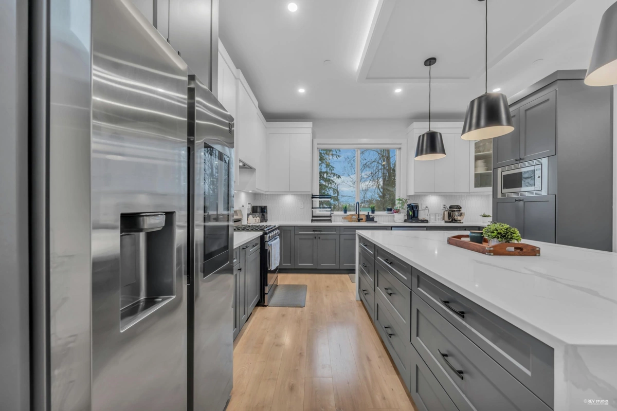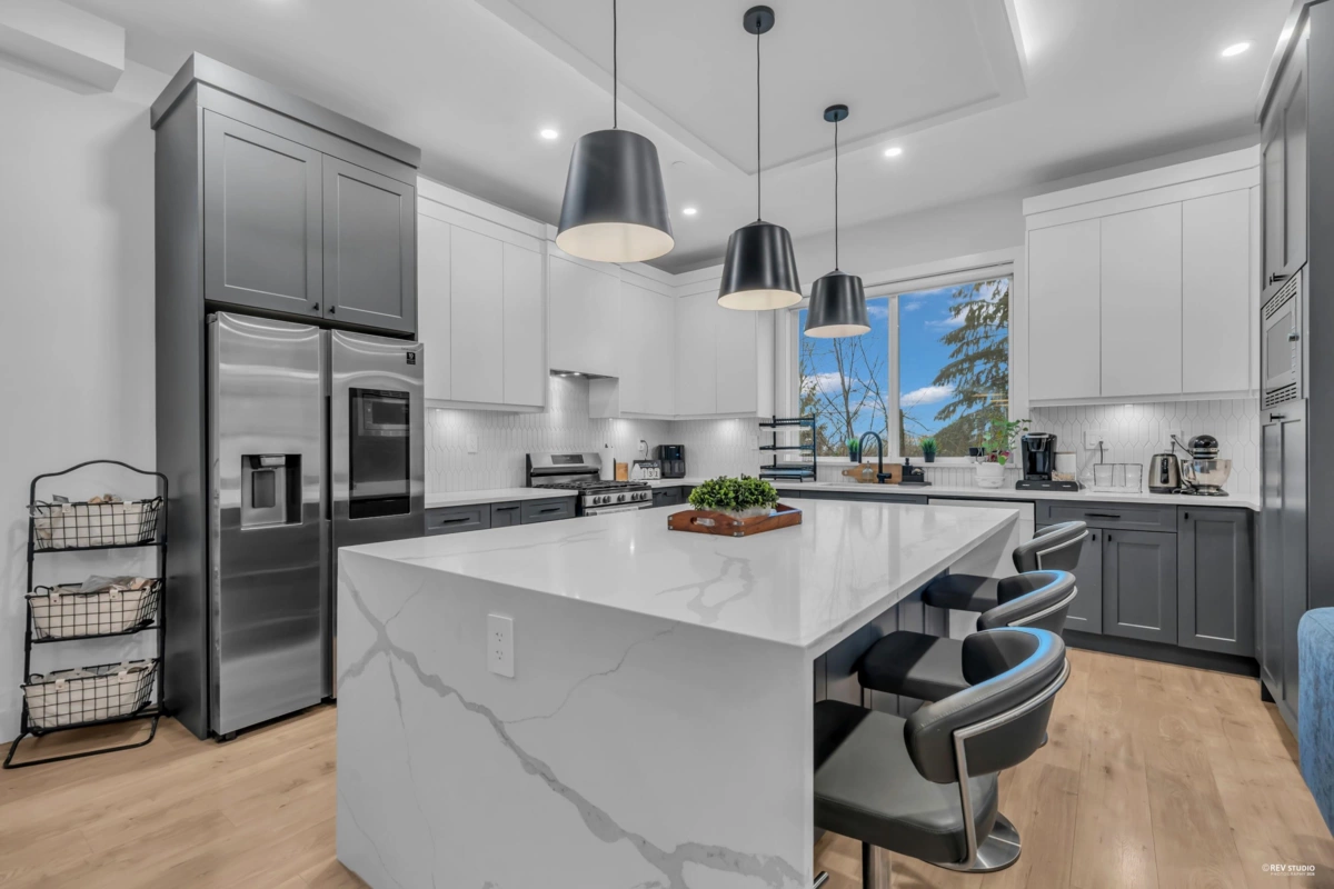 Step into this stunning, thoughtfully designed modern family home in Maple Ridge. The bright, open-concept layout showcases exceptional craftsmanship and upscale finishes across 3,856 sq. ft. of contemporary space, featuring 6 Bed 6-Bath, including a 2-Bed suite. The designer kitchen impresses with sleek two-tone cabinetry, a built-in pantry, waterfall countertops, under-cabinet lighting, imported ceramic tile backsplash, matte black hardware, and a gas range. The luxurious primary retreat boasts vaulted ceilings, a private balcony, dual walk-in closets, and a spa-inspired 5-piece ensuite with Riobel fixtures and custom lighting. Additional highlights include air conditioning, a gas BBQ hookup, and recessed lighting throughout and a theatre room!
