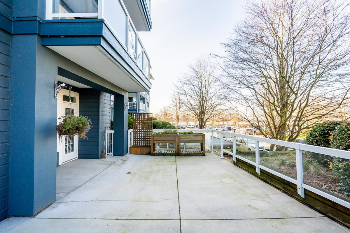 Welcome to this rarely available spacious 1441 sqft 2bdrm/2bath ground level corner unit in the Brittania with 2 large patios, with river views from the main patio and living room. 2026 updates include: renovated main bathroom, new carpets in the bedroom, new paint and new washer/dryer. 2017 updates include: a fully renovated kitchen with quartz countertops and under cabinet lighting; and custom closets in both bedrooms and entry hall. The unit also has engineered HW flooring in main areas, radiant floor heating, and crown and sidewall mouldings. This property is located only a 12 minute walk to the famous Steveston village with lots of shopping and restaurant options as well as fresh fish and seafood from the market. This unit comes with 2 parking stalls. EV charging available.