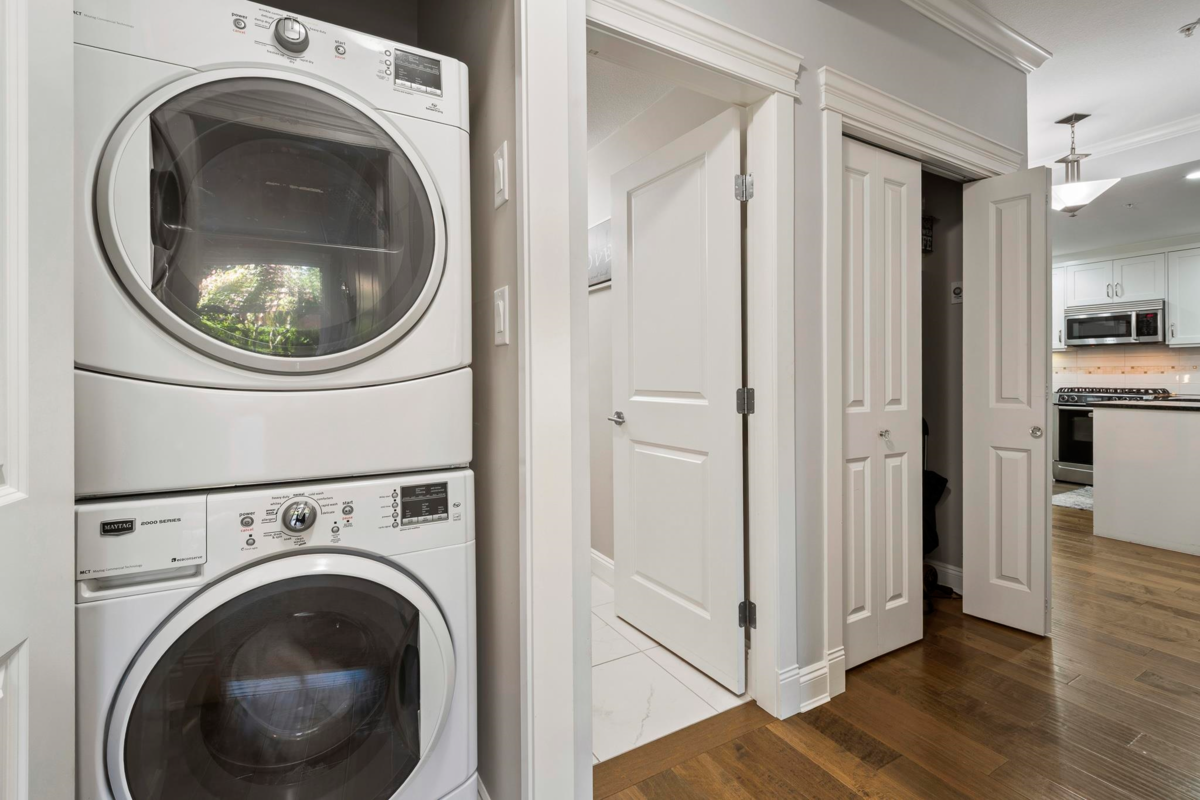 Experience luxury living in this beautifully designed 957 sq/ft residence at Gemini 2. The gourmet kitchen is equipped with ss appliances, quartz countertops, rich wood cabinetry, a stylish tile backsplash, and a front-load dishwasher. The spacious living room features an elegant electric fireplace with a mantle and opens onto a generous patio with convenient lane access. Retreat to the expansive primary bedroom, complete with a spa-inspired ensuite showcasing a glass-enclosed shower, double vanity with quartz counters, and modern finishes. Additional highlights include hw flooring, plush carpeted bedrooms, in-suite laundry, designer lighting, and oversized windows that flood the space with natural light. With premium amenities such as a full gym, rec room BBQ area and guest suite.