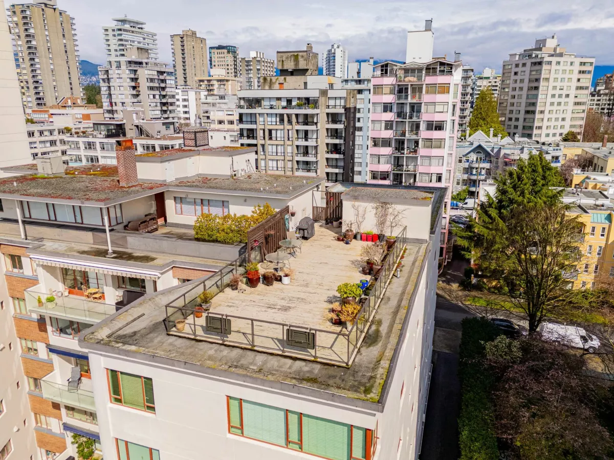 West End / West of Denman Beachfront charm meets classic elegance. Nestled just across from the shimmering shores of English Bay, this well-maintained concrete co-op offers timeless appeal in Vancouver’s iconic Beach Ave community. This 1-bedroom home of 792 sqft with original oak hardwood floors, a modernized kitchen and bath, and a layout that truly feels like home. Enjoy the rooftop deck with direct water views—your private seat to summer fireworks and events, minus the crowds. Includes large storage locker and live-in caretaker. Maintenance fees cover heat, hot water, and property tax and Caretaker. The Caretaker's suite is owned by the co-op. No pets/rentals keep the building quiet. Steps to Seawall/Stanley Park/cafés/shops/and transit effortless, car-free living. BY APPOINTMENT.