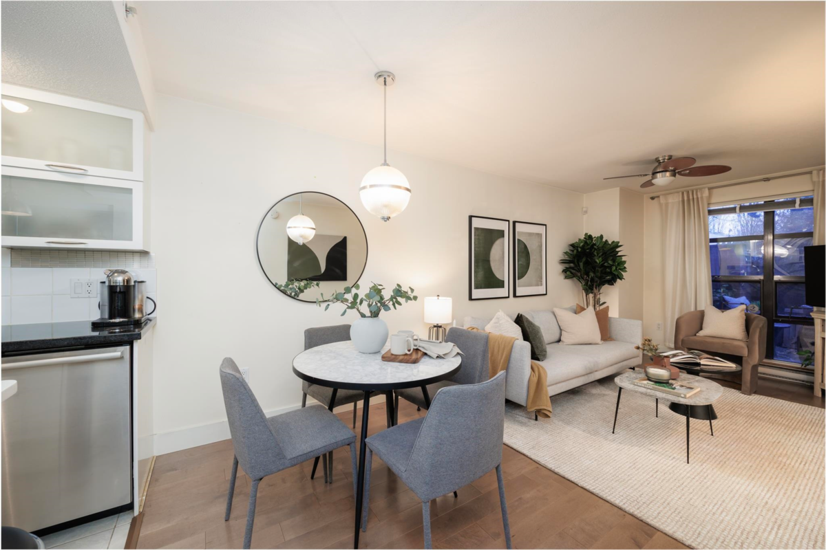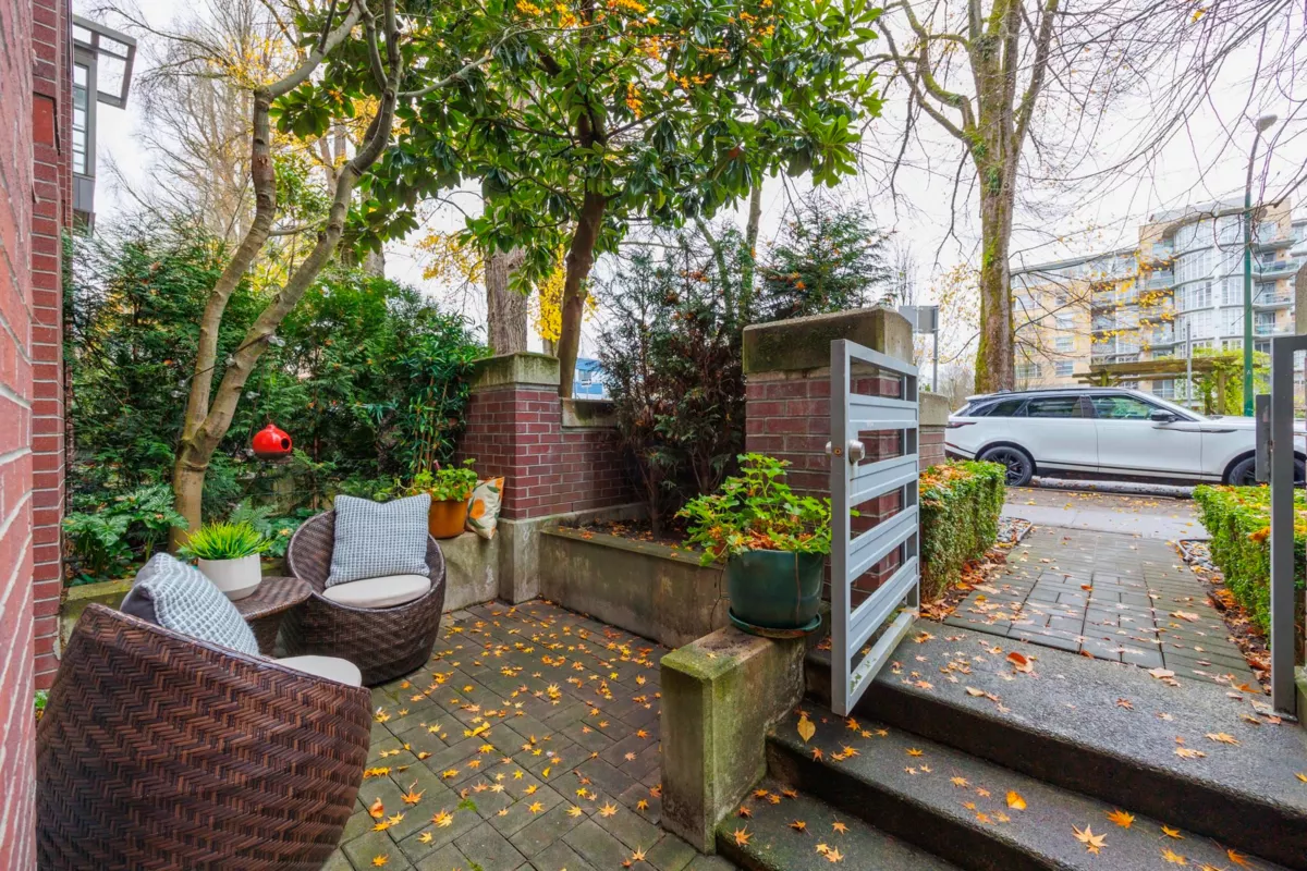 Sophisticated garden-level home in Arbutus Walk. Enjoy life to its fullest in this spacious 1 bedroom and den floor plan that has been meticulously updated with newer kitchen (granite counters and stainless appliances), bathroom and flooring. Enjoy the bright south-facing orientation, large private patio and proximity to all the shopping, restaurants and amenities that West Broadway and Kits have to offer. Just 2 blocks to beautiful Connaught Park and a 15 minute stroll to the beach. Top private and public schools close by. Pets welcome. Measurements approximate. First showing SUNDAY DEC 1st 2-4 PM.