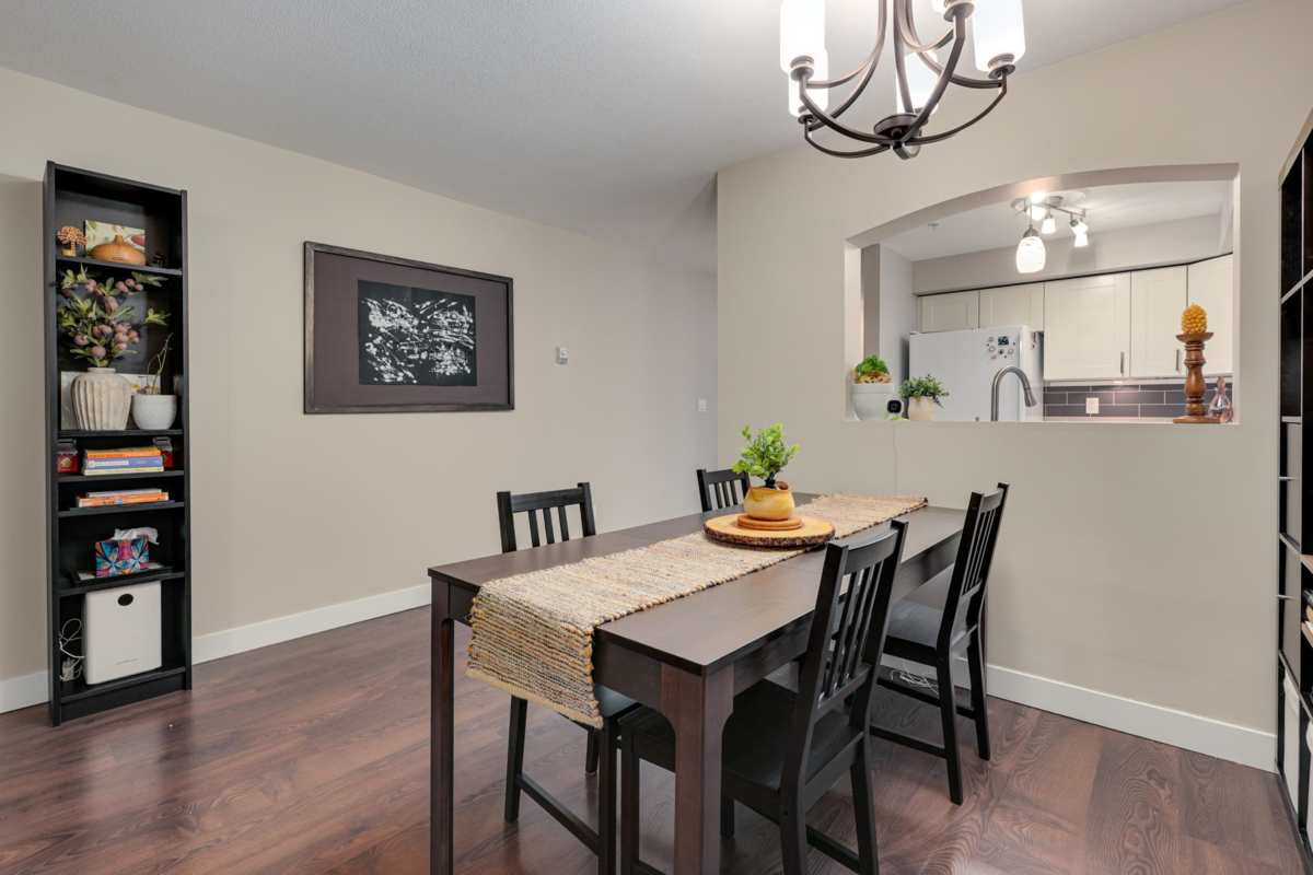 This beautifully updated 881 sq/ft ground-floor condo offers spacious rooms, wide hallways, and lots of windows for natural light. The generous south-facing patio is framed by trees, providing a perfect blend of sunshine and privacy. The roomy 4-pc bathroom features a deep storage closet with a rough-in for a stand-up shower, while the laundry room offers full-sized W/D (2022) & additional storage. Recent updates include new kitchen, new bathroom, wide-plank flooring (2009), bedroom carpet (2020), cordless blinds (2023), and full repaint incl. trim & ceilings (2025). This popular, pet-friendly building is well-managed, fully rain screened with new windows. Walking distance to Gates Park, trails, dog park, PoCo Rec Centre, West Coast Express & shopping.