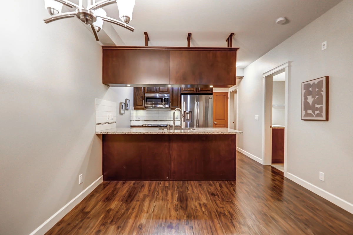 WALNUT RIDGE 3 / QUADRA HOMES. ICONIC condo features; 2 bed + 1 bath, Huge extra in-suite storage, Heat pump/AC, Concrete + wood combined HYBRID building, Laminate flooring throughout, BBQ Gas hookup & stove, Gas is included, 2 PARKING, Rolling huge storage, heated floor in bathroom, NEW FRESHLY PAINTED throughout, Updated appliances. Very PRIVATE location, Acoustic sound dampening in the floors. PRIVATE East facing patio w/ SEPARATE ENTRANCE - BEST for kids & pets, Located on the ground floor with easy access to nearby shops and amenities. Yorkson Middle Schools - 4 mins walking & Elementary - 8 mins walking & RE Mountain Secondary - 5 min driving. Perfect unit for a first home buyers or investors!