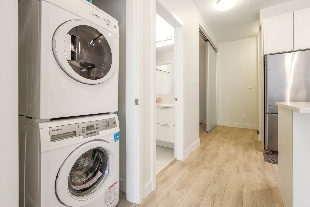 Remarkable opportunity at 7-Year-Old "CRISTALLO"! Fantastic Junior 2-bdrm (2ND BDRM HAS NO WINDOW & CLOSET) home on the ground level w/ a spacious layout, & w/ a very rare perk of 2 PARKING STALLS! Clean-cut floor plan w/ high ceilings, & modern laminate flooring throughout. Kitchen w/ bright colour scheme, quartz countertops, & S/S appliances. Pbdrm has custom-built closets w/ cheater access to stylishly tiled full bthrm. Huge south-facing patio, raised from ground level, offering privacy & security. In-suite laundry, & den makes perfect office or Jr. 2nd bdrm. As mentioned, 2 prkg stalls, w/ 1 locker., & pet-friendly bldg. Fabulous location, across from Alderson Elementary, & steps to transit. Close to new amenities on Lougheed, and enjoy direct Hwy 1 access. OPEN HOUSE SAT JAN 3, 2-4 PM