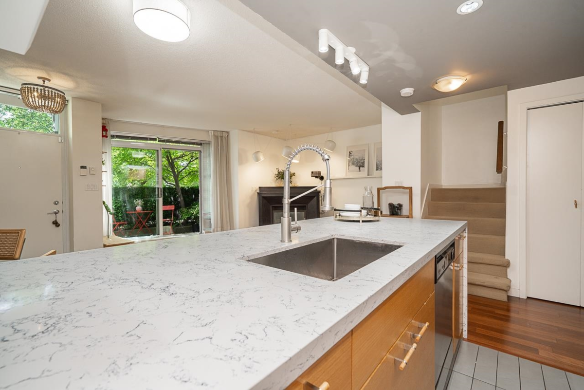 Welcome to this rarely available waterfront townhouse built by Concord Pacific in the prestigious Coopers Pointe community—offering an exceptional blend of luxury, privacy, and vibrant waterfront living. This spacious 2-bedroom, 2.5-bath residence features an entrance facing the water, allowing seamless indoor-outdoor flow. Located directly across from Coopers Park, with False Creek, Science World, and the seawall just steps away. Enjoy relaxing or entertaining on your 105 sq. ft. private patio surrounded by lush greenery. Interior highlights include a gourmet kitchen with granite countertops, breakfast bar, gas cooktop, and stainless-steel appliances. 2 parkings (#108 & #109) and storage locker (#19). Open house, Sunday, December 14 from 2-4 pm.