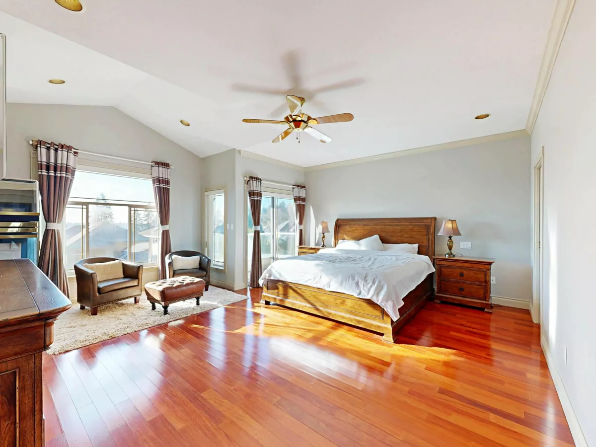 A truly luxurious custom-built home located on a quiet cul-de-sac. Italian granite floors highlight the main and lower levels, with hardwood and plush 65-oz carpeting upstairs. Radiant in-floor heating throughout. A dramatic 17' foyer features a gold-plated Italian chandelier and an elegant three-way oak staircase. Gourmet chef’s kitchen with nine appliances, granite counters, and breakfast bar. Spacious primary bedroom with fireplace, 7-piece marble ensuite, walk-in closet, private deck, and views. Beautifully landscaped yard with deck and hot tub. Billiards and media rooms, home gym, custom office and bar, whole-home audio, ample storage, parking for up to 9 vehicles. School catchment includes Heritage Mountain Elementary and Heritage Woods Secondary.