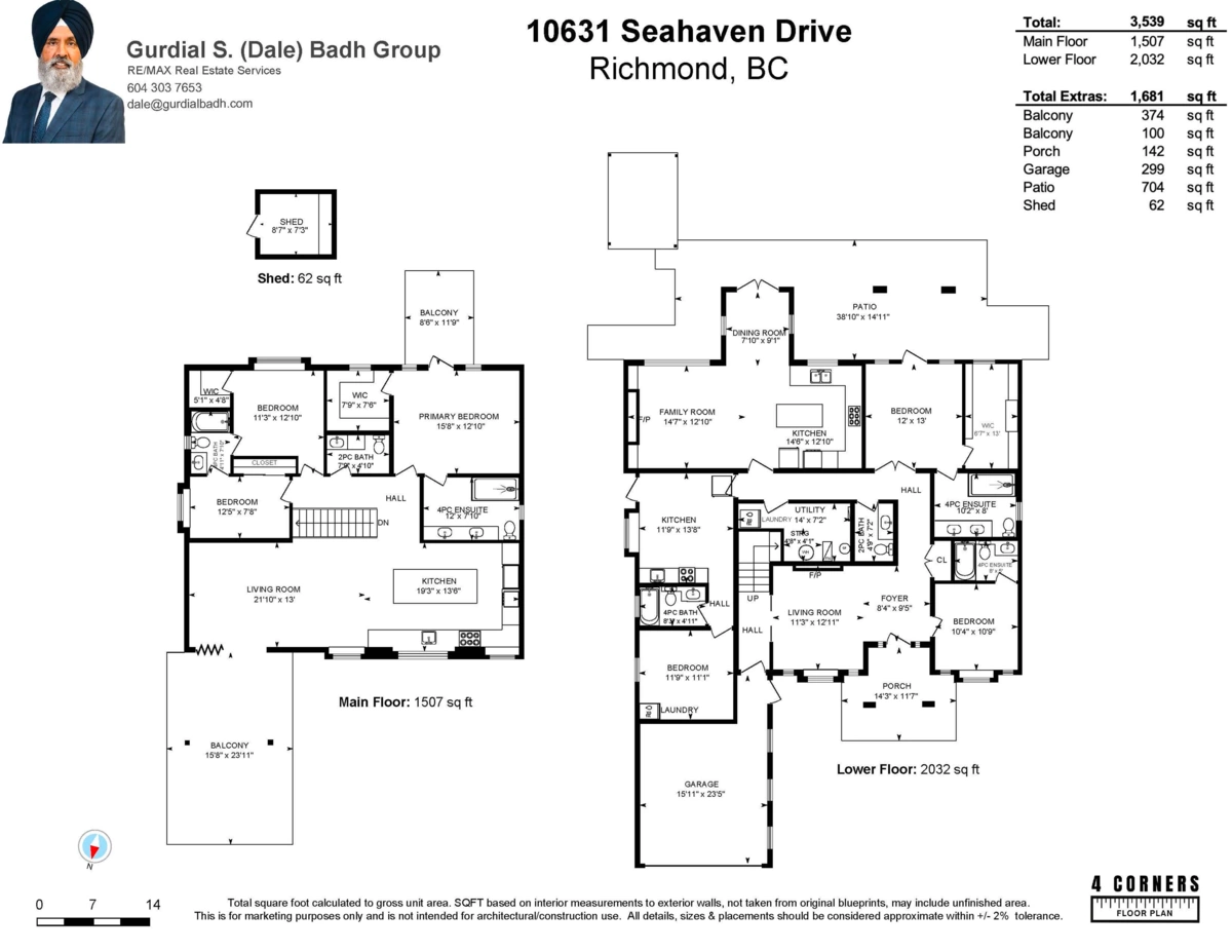 A home that finally fits the whole family - beautifully. 10631 Seahaven Dr, Richmond. Custom-built for multi-generational living: 6 bed, 7 bath, 3,538 sqft home on 7,003sqft lot. Main level offers a generous primary, open gourmet kitchen with top-tier appliances, and a bright family room with bi-fold doors to the front deck for effortless indoor-outdoor living. Downstairs, create the perfect parents' retreat: stylish lounge that opens to the backyard, large primary with walk-in closet, premium finishes, plus an extra bedroom/office and a separate 1-bed suite mortgage helper. Impeccable craftsmanship throughout. Minutes to Hwy 99/91, Oak St Bridge, Massey Tunnel, Ironwood Shopping Centre & SilverCity.