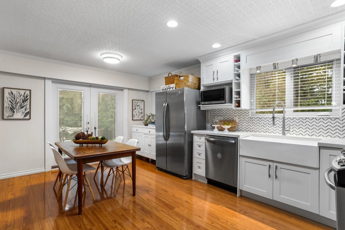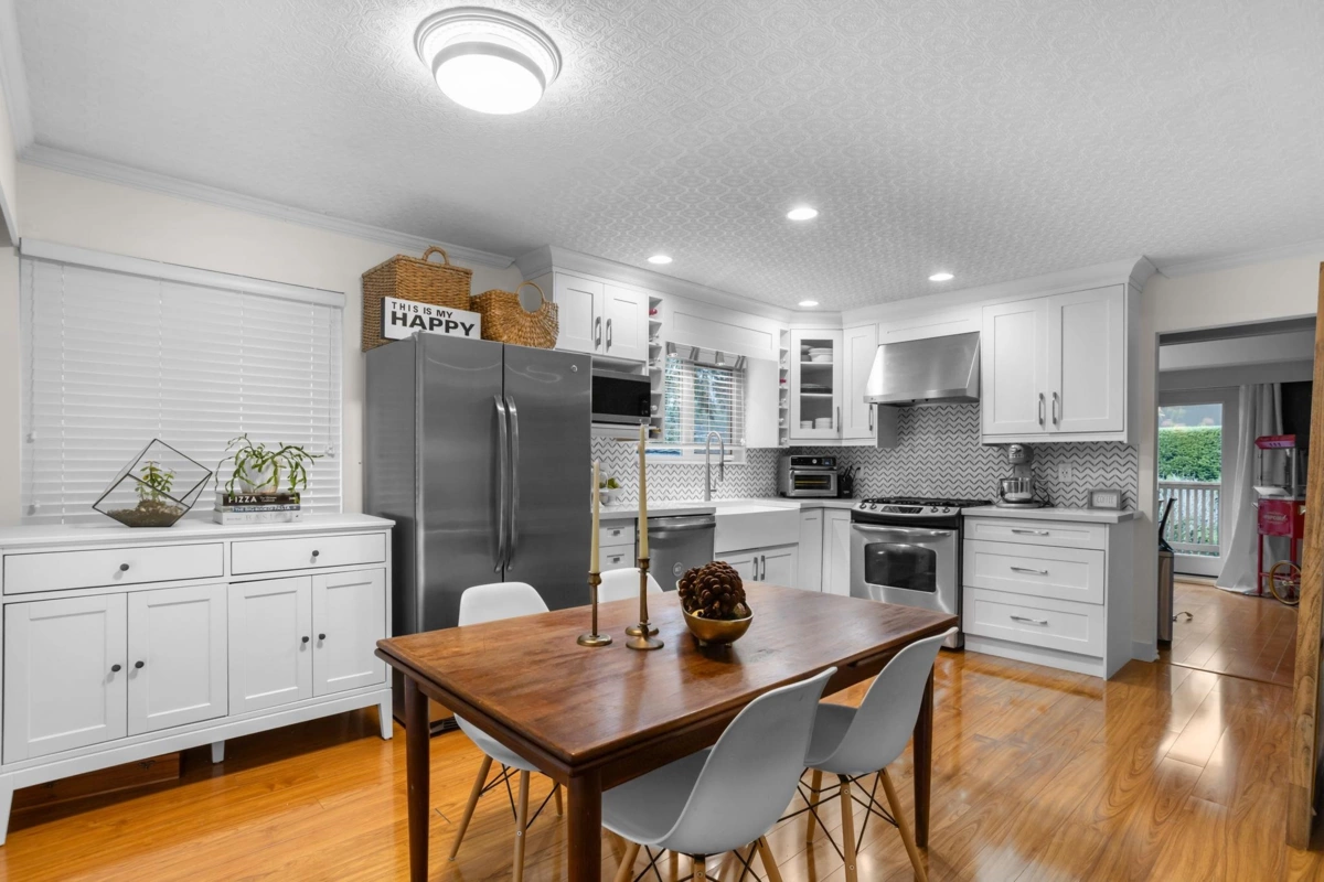 Welcome to this charming family home on a quiet street in the desirable Canterbury Heights neighbourhood of North Delta. The elegant white exterior and brick-paved driveway set the tone for this home’s upscale street presence. With ~2537 sqft of living space this home offers 4 bedrooms and 3 bathrooms. Bright living and dining areas flow nicely for everyday living and entertaining, while the lower level offers flexible space with a separate entry and convenient wet bar area. Updates include a metal roof, remodeled kitchen, and more. The ~8000 sqft lot offers a private backyard with plenty of room to relax, play, or garden. Conveniently located close to schools, parks, shopping, and major commuter routes, this home offers long-term value in a well-established, family-friendly neighbourhood.