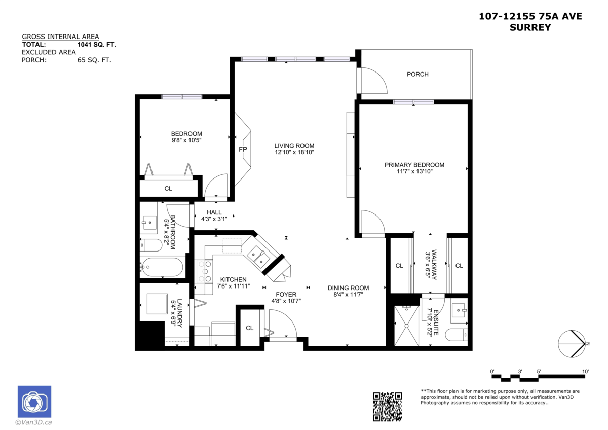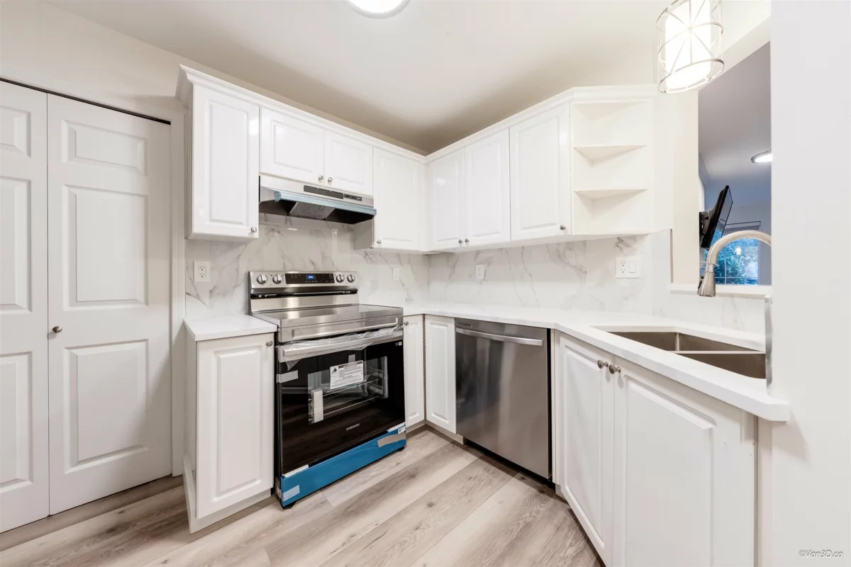 Spacious ground-floor, fully renovated 2 bed/2 bath unit. Enjoy an open layout with a brand-new kitchen and bathrooms upgrades, plus updated flooring, lighting, and fresh paint—nothing to do but move in. Bedrooms are well-separated for privacy, and the main living area offers easy flow for everyday life and entertaining. All-in comfort: radiant heat + gas fireplace covered by strata fees. Unbeatable convenience: walk to Scott Road rapid transit, the library, Cineplex, banks, groceries, and a nearby playground. A clean, low-maintenance home in a highly walkable location—ideal for first-time buyers, downsizers, or anyone seeking turnkey value.