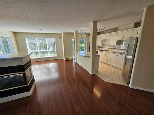 One of the largest units in Nautica North, this bright corner home offers 1,179 sq. ft. of open-concept living with abundant outdoor space. Featuring two bedrooms and two bathrooms, a deck off the dining area, and a garden patio with a private entrance from the street. Thoughtfully designed, including modern appliances, laminate flooring, gas fireplace, spacious foyer, generous living and dining areas, in-suite laundry, pantry, convenient cross-hall storage, and two large parking stalls. Ideally located close to schools and the many amenities Stevenson South has to offer. Move in as is or renovate to suit your vision. Open House Saturday Feb 7th 1pm to 3pm