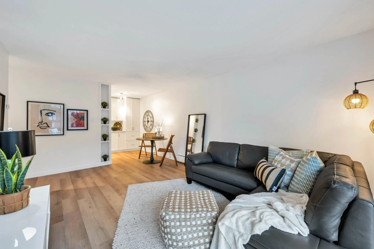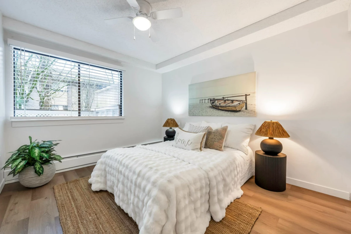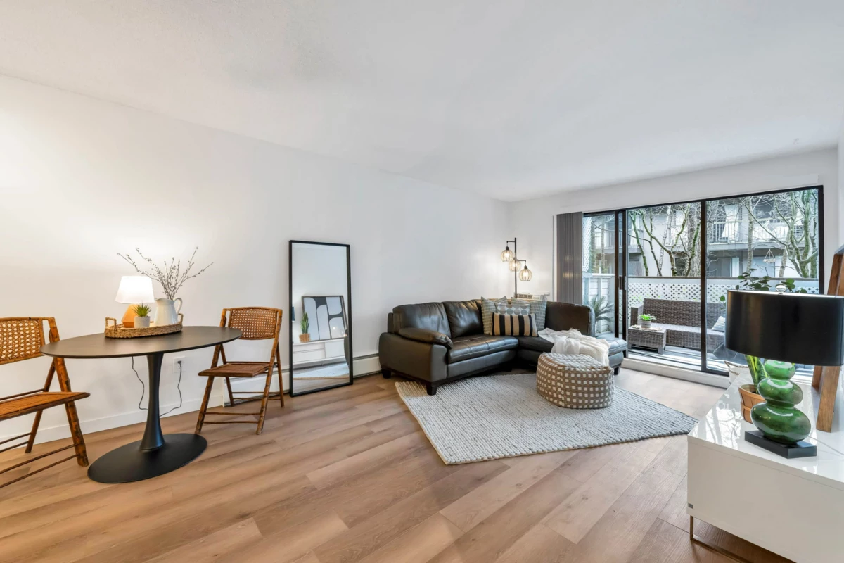 Stunning, spacious, completely renovated one bedroom condo. New kitchen, bathroom, flooring, lighting & paint. Located on main floor for one-level living with no stairs or elevator to deal with. Soak in the sun on huge south-facing patio. Incredible location to enjoy White Rock Beach lifestyle, easy access to transit and very walkable with shopping, restaurants, banking & more on your doorstep. Strong asset for the future: co-op title means you are part-owner of the company that owns the building & land. Super low monthly fees incl. heat, water, hot water & even your property taxes. Professionally managed & well cared for building has over $700,000 in contingency reserve fund. Unit comes w one parking spot & locker. 55+, no smoking, one cat allowed. Simply beautiful, move-in ready condo.