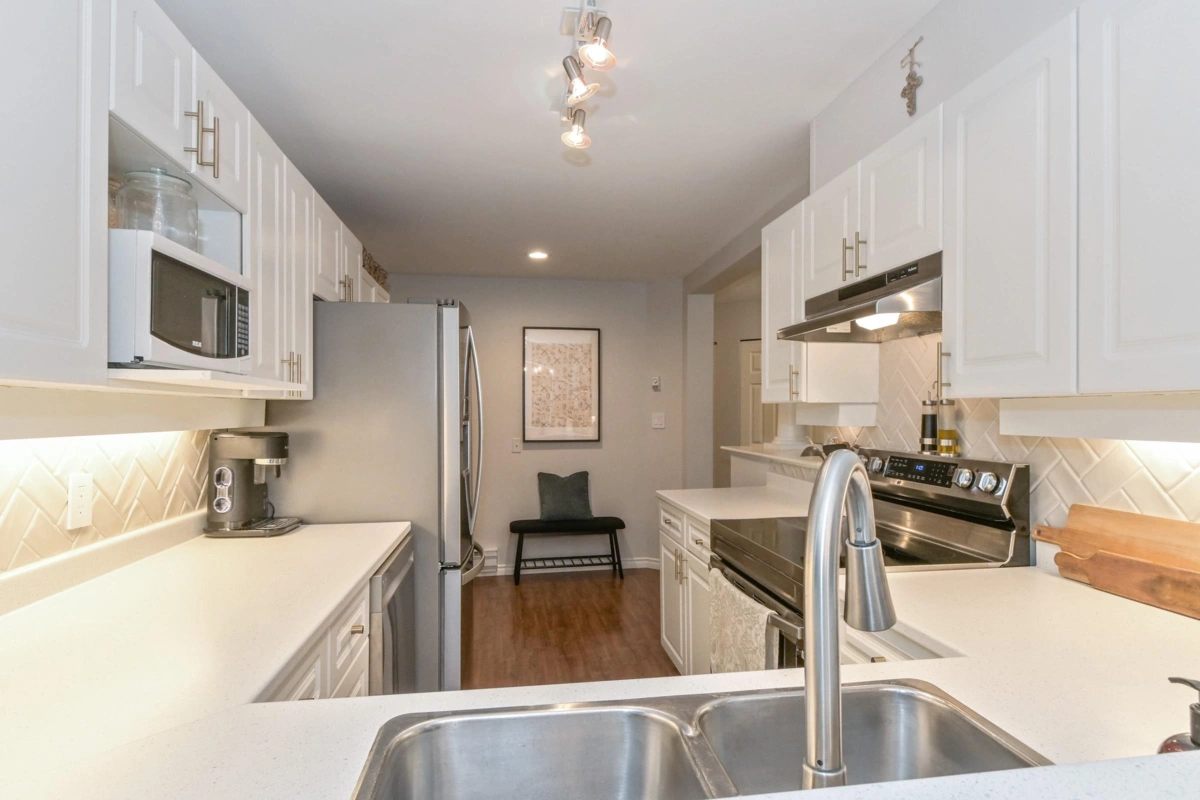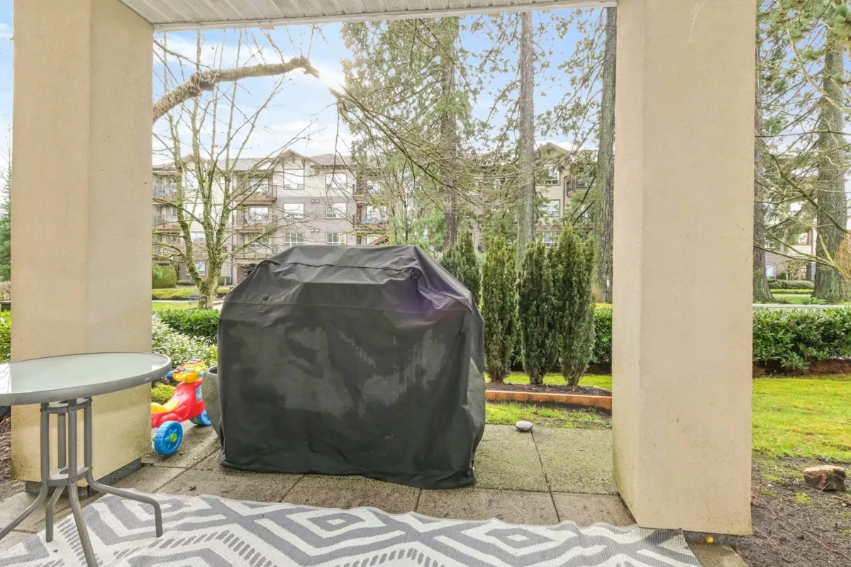 VERY WELL MAINTAINED AND HIGHLY SOUGHT AFTER LOCATION. Spacious, contemporary Two Bedroom, Two Bath, Main Floor Corner Suite nestled in the heart of Fleetwood. Minutes walk to Parks, Sky Train, Library, Community Centre, Leisure Centre & Schools. Updated Kitchen w/pass through, newer stainless steel appliances. Upgraded Ensuite w/Quartz countertops and ceramic sinks. Large Primary Bedroom w/walk-in closet. Wood tone laminate flooring throughout. Freshly painted with neutral tones. BRIGHT OPEN FLOOR PLAN. South-facing back yard with walkout Patio. Low monthly utilities. Close to 3 underground Parking Stalls and Storage Locker. PERFECT FOR FAMILIES. Highly Attentive Strata Council and Property Management; Healthy Contingency Reserve Fund. Sellers are related to Listing Agent.