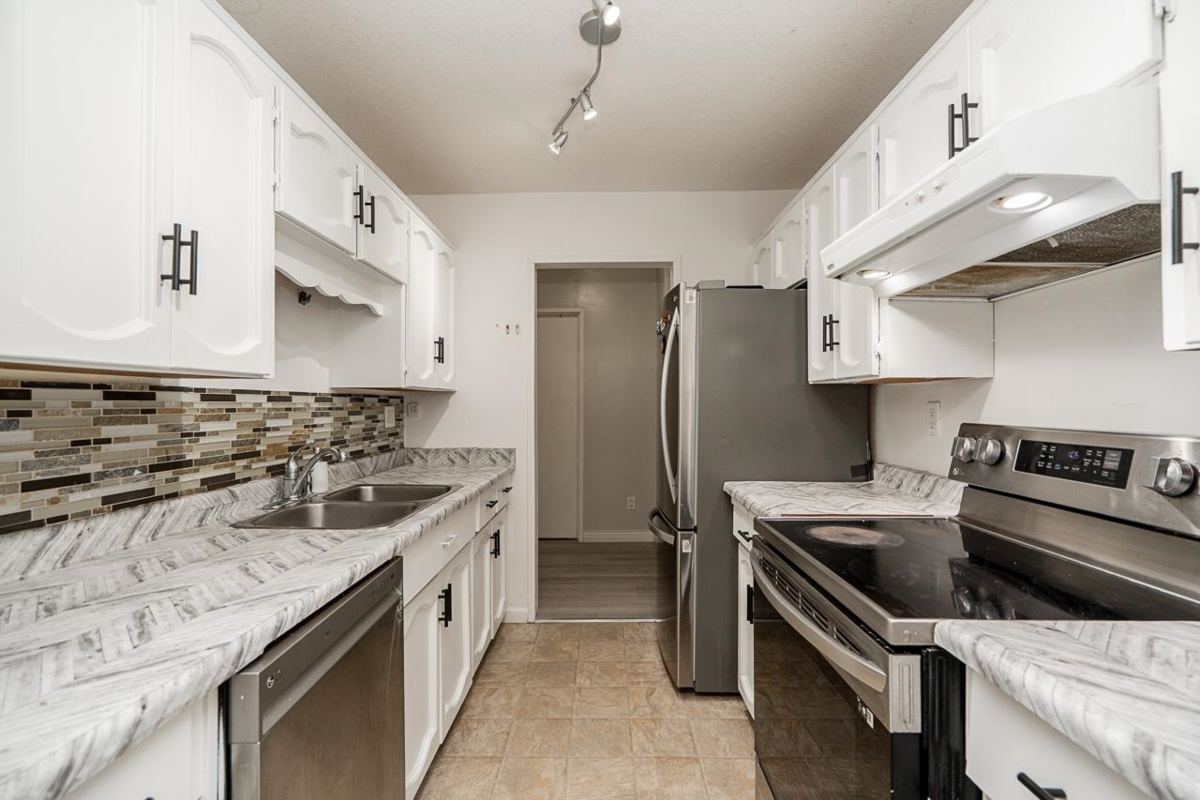 Beautifully updated 2-bedroom, 2-bathroom home located on Tims Avenue in the heart of Central Abbotsford. This well-maintained unit features modern laminate flooring, new appliances, and a generous in-suite storage room for added convenience. Enjoy a peaceful, semi-private outlook from the patio, surrounded by mature, well-maintained greenery. The primary bedroom includes a full ensuite, offering comfort and privacy. A bright fitness room is conveniently located just steps from the unit. The building is proactively managed, self-run with an on-site caretaker, and well cared for. Centrally located and close to shopping, restaurants, schools, parks, transit, and all major amenities, making this an excellent opportunity for both homeowners and investors.