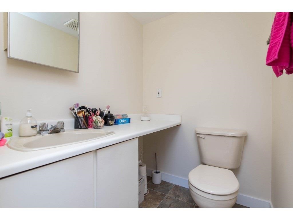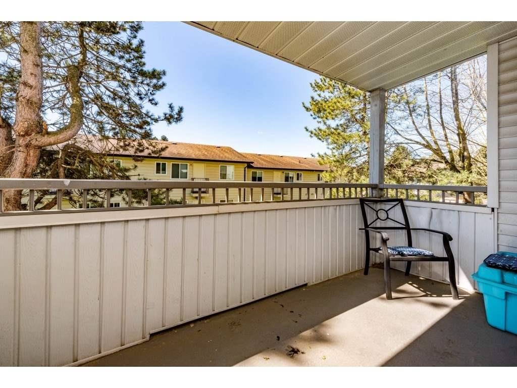 Welcome to THE HAVEN, located in the heart of Central Abbotsford. With no age restrictions, this 910 sq ft, 2 bed/1.5 bath condo offers a practical layout, perfect for first-time buyers or investors. Situated on the elevated first floor above the parking garage, this west-facing unit enjoys added privacy and a sunny balcony—perfect for evening light. The functional floor plan includes a spacious living and dining area, a primary bedroom with convenient ensuite powder room, and a second bedroom ideal for guests or a home office. Shared laundry is located directly across the hall for easy access. This home includes one parking spot (with option to rent more) and storage. Conveniently located close to shopping, transit, and everyday amenities. No pets permitted.