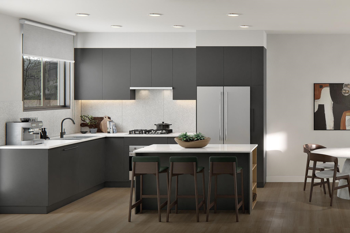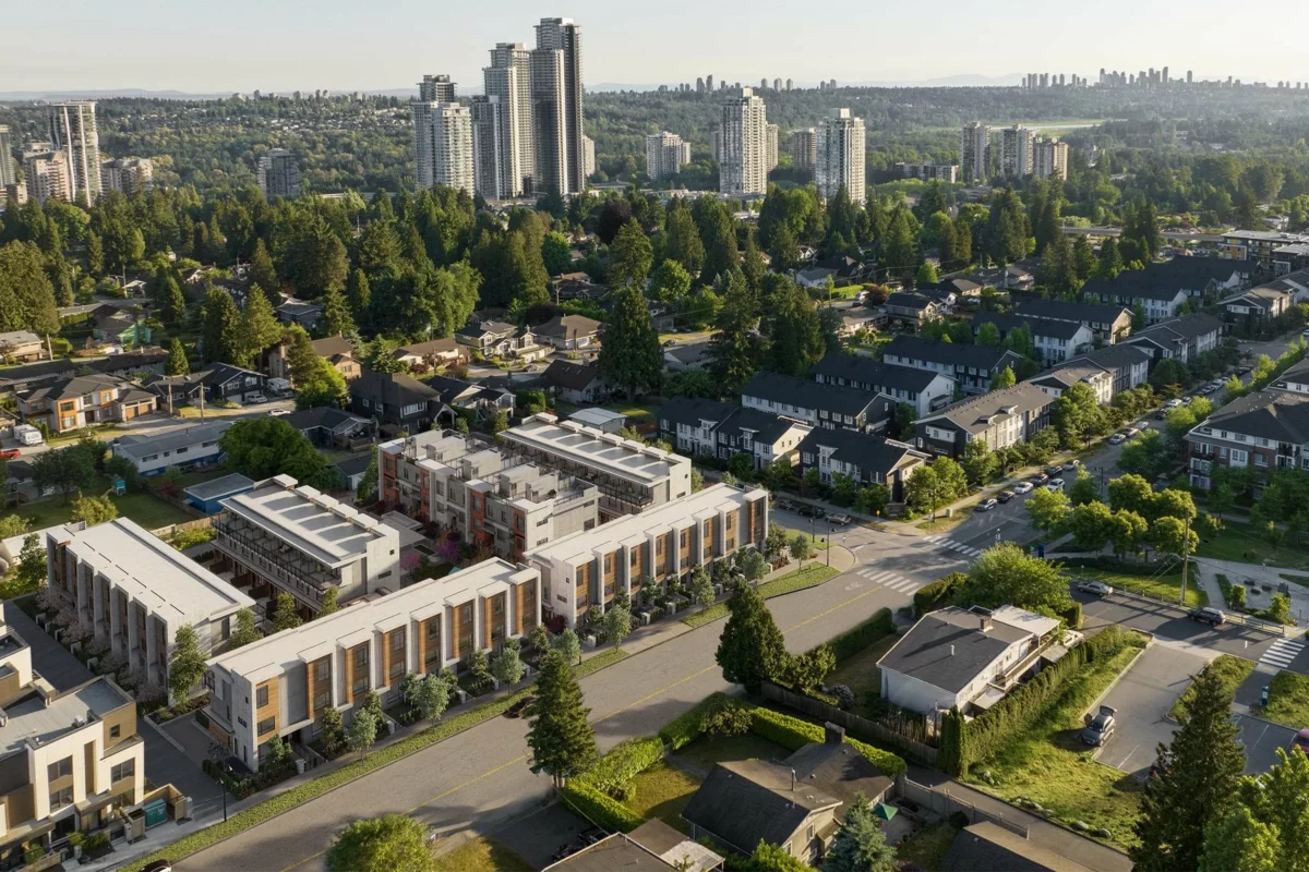 Welcome to THE GROVE, a collection of 49 contemporary townhomes coming to the ever-expanding Burquitlam neighbourhood. Inspired by the tradition of single-family living, homes are custom designed to feature open-concept interiors that look out onto lush outdoor courtyards. This F plan home offers three levels of spacious living with 2 bedrooms on the second floor. The primary suite spans the top floor and includes its own private balcony. On the lower level enjoy direct access to secured underground parking with a convenient storage/flex space. The gated front yard overlooks Cottonwood park and will be ready to move in Summer 2026. Our Presentation Centre is now open by appointment at Unit 200 - 3355 North Road, Burnaby.