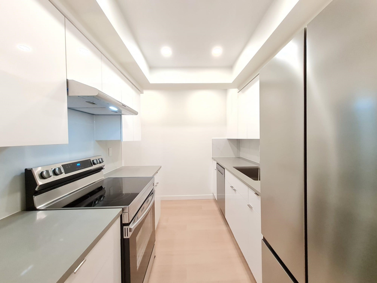 METICULOUSLY UPDATED, 1-bedroom & Den unit located in the heart of Richmond! This generously sized residence is ideally situated just steps from RICHMOND CENTER and surrounded by many dining options. Inside, discover sleek laminate flooring complemented by elegant large-format tiles in the bathroom. HUGE outdoor balcony! The kitchen boasts stainless steel appliances, soft-closing cabinet doors, and quartz countertops, offering both style and functionality. The maintenance fee covers heat and hot water, providing added value. Includes 1 parking and 1 storage locker! OPEN HOUSE SUNDAY JANUARY 25, 4:30PM-6:30PM