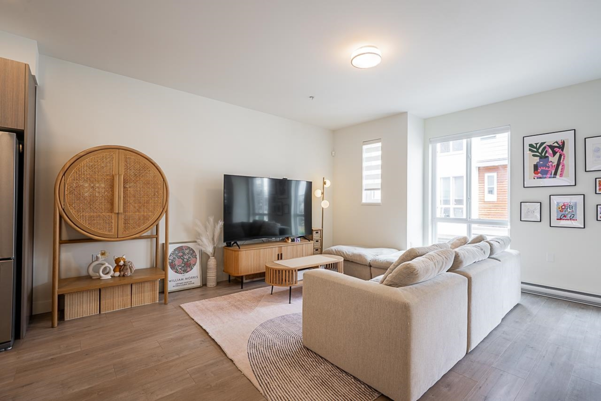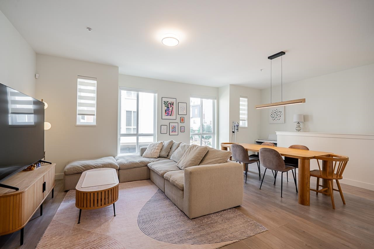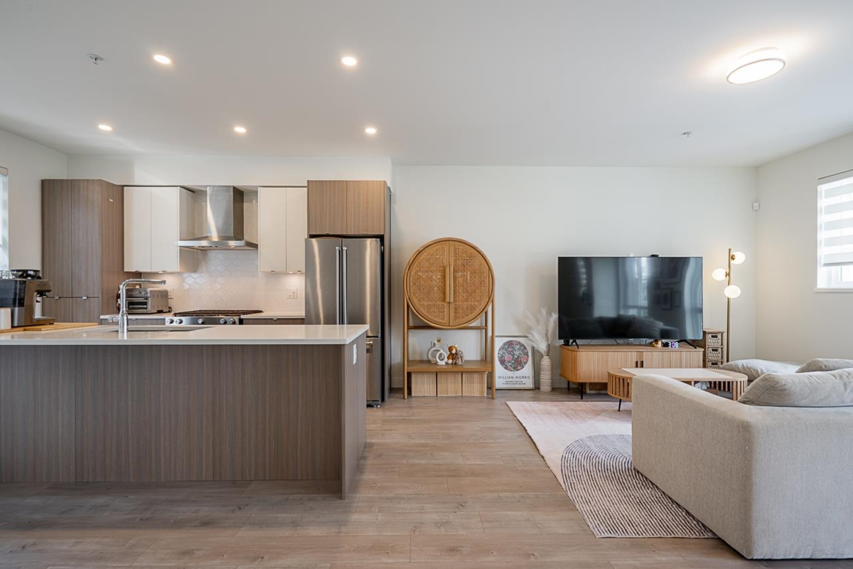 Ideal location in family-friendly Willoughby Heights. Spacious 3 bed, 2.5 bath townhouse with bright, open-concept layout. The main floor features gourmet kitchen with GAS range, huge centre island, quartz counters, upgraded blinds, HIGH ceilings and gas BBQ hook up with awning with tiled floor on the deck are just some of the ingenious features! Upstairs, Huge primary includes large en-suite with double vanity sinks plus spacious walk-in closet,2 large secondary bedrooms and side by side washer dryer. Double garage, extra storage space with epoxy floor equipped with EV Charger. Backyard includes artificial turf for easy maintenance all year round. Located steps away from Richard Bulpitt Elementary, Willoughby Town Centre, and easy Hwy 1 access! Open House Oct 12 (Sun) 2-4pm