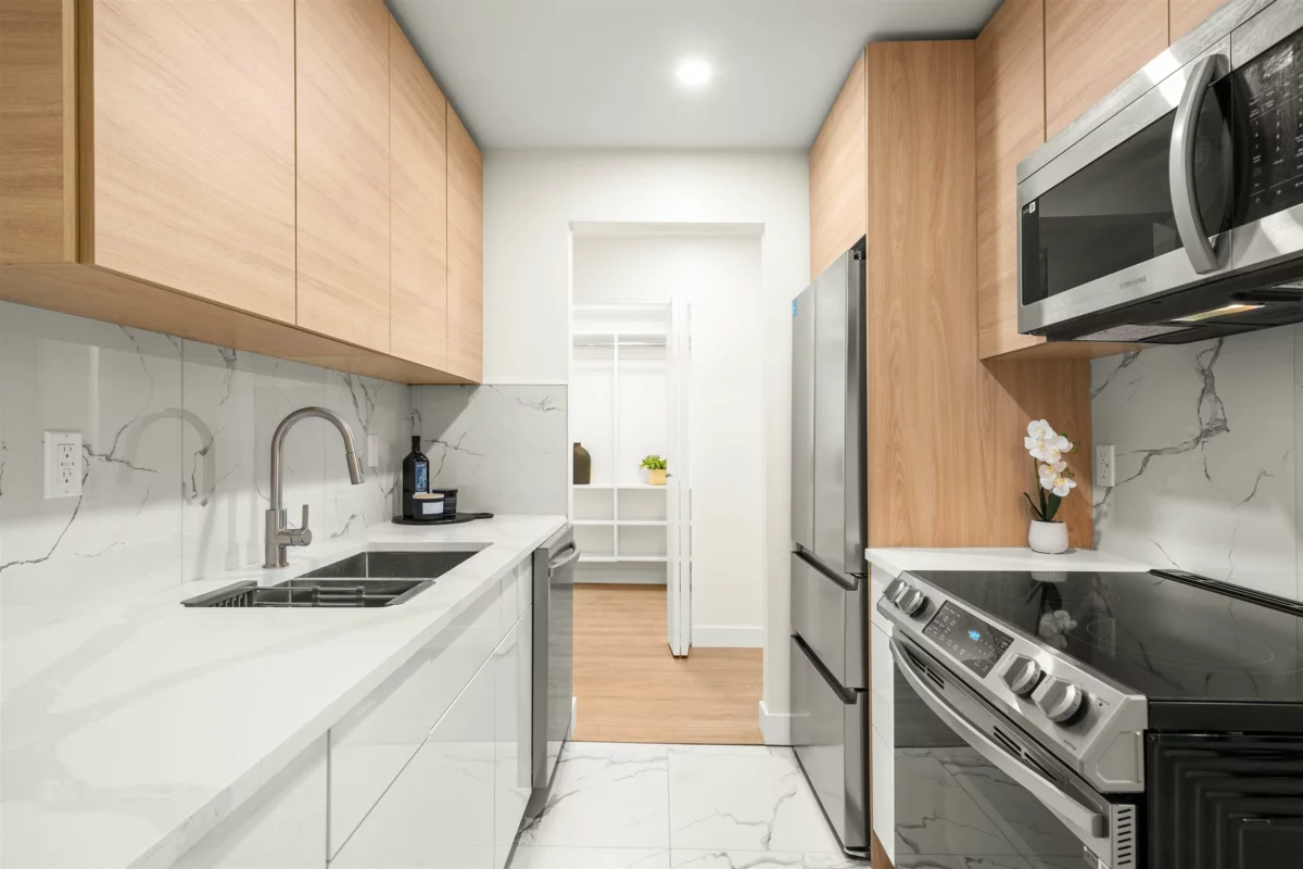 Completely renovated condo comes with a ONE OF A KIND - Massive private south-facing (2024 fenced) backyard - perfect for entertainment purposes. 2024 renovation includes: new laminate flooring throughout, designer paint, modern light fixtures, BRAND NEW stainless steel appliances, custom kitchen cabinets, beautiful tile backsplash, quartz countertops, spa inspired bathroom, new blinds & much more! You will also find a spacious master bedroom with a bay window looking into your garden & spacious custom closet. In unit large storage with framed closet organizer. Additionally, this suite is perfect for pet lovers who would enjoy the pet-friendly patio. Open House: Saturday June 8th from 2pm - 4pm.