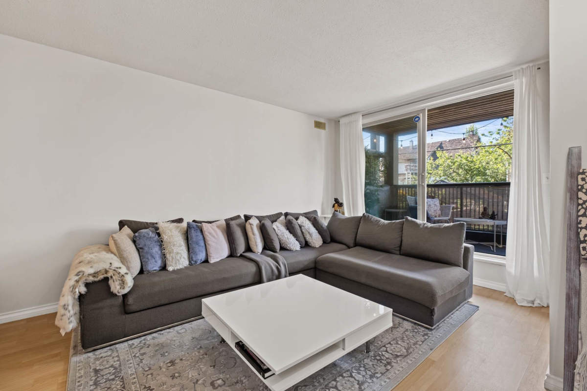 The Empress, a Fully Rain-Screened complex located on a quiet treelined avenue in Fairview Slopes. The apartment offers a unique floor plan with large principle rooms allowing plenty of space for comfortable living. The home is equipped with laminate flooring, in-suite laundry, gas fireplace, many storage options and one secure parking stall is included. Expand your entertaining space by nearly 250sqft with a private wrap around patio perfect for a barbecue and relaxing. Two Pets permitted and rentals allowed in accordance with strata bylaws. Enjoy the convenience of living moments from West Broadway amenities, restaurants, Granville shopping, transit lines, VGH, recreational activities and parks.