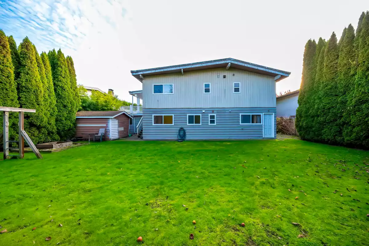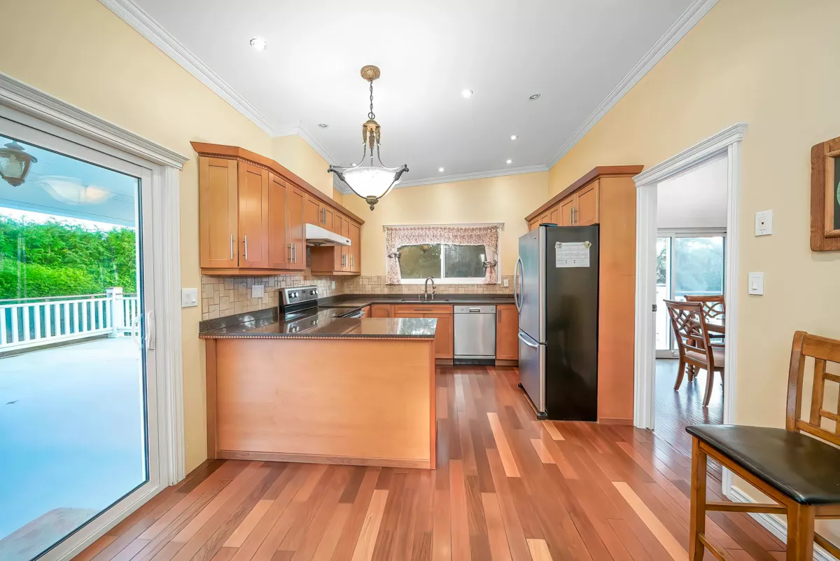 Well-maintained two-level home with fresh air system featuring 6 bedrooms, 3.5 baths, and 2 full kitchens. The main floor offers 3 bedrooms, a full kitchen, and a living area with a separate entry, perfect as a mortgage helper. Upstairs features a high-ceiling living room, formal dining, an enclosed kitchen with eating area, 3 bedrooms, and a wrap-around balcony for summer relaxation. Sitting on an 8,116 sqft lot with a spacious, private backyard ideal for gatherings. Located in a quiet, family-friendly neighborhood close to schools, shopping, and easy access to Highway 99. Great for large families, rental income, or rebuild Multi-unit potential.