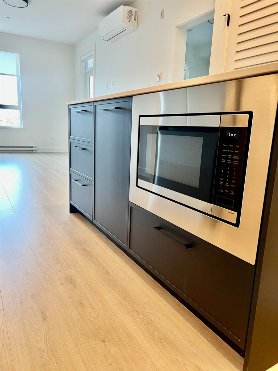This Brand New ‘B’ PLAN home at Hayer Town Centre in Willoughby is ready to move in to. Features: 1 bedroom + 1 bathroom with 575 square feet PLUS a spacious 100 sq ft enclosed solarium with retractable upper glass, gas BBQ outlet and water supply. Other features include: closet organizers, premium appliance package including a gas stove, blinds, quartz countertops, laminate flooring throughout, central AIR CONDITIONING, one parking stall and a storage locker. Two pets allowed. A master-planned community at 200 St & 76 Ave with over 35,000 sq ft of future retail. Enjoy access to a stand-alone amenity building offering two entertainment lounges, a games/party room, outdoor fire pits, and a fully fenced dog park.