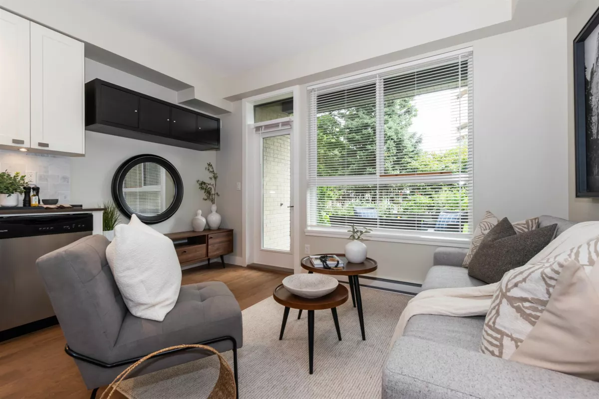 WHY RENT when you can OWN! Welcome to HUDSON'S LOFT part of Central Park Village, with retail stores, restaurants, services and transit all close by! A well kept, stylish ground floor junior suite on the quiet side of the building, is the perfect starter home for you. Cool and bright, this northwest facing home welcomes PETS. This upscale condo has just been professionally painted, has full sized appliances, quartz countertops, rain shower and engineered hardwood flooring. Also in suite laundry. Space for dining table aside the living room, separate sleeping quarters with a good sized patio off the living space for your furry friends to enjoy. Secure bldg. with gated underground parking and gated visitor parking, fob entry and a storage locker. Very quiet and non smoking building! open