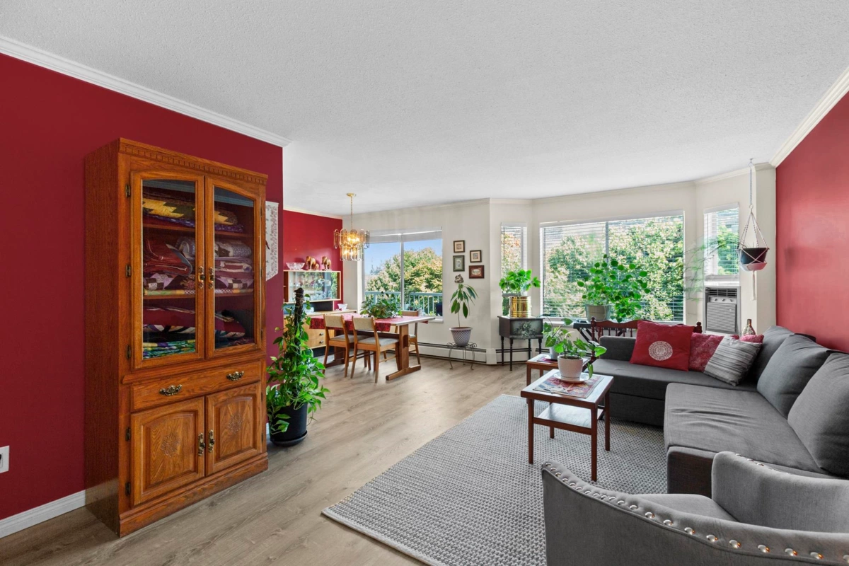 Bright, spacious, First Floor Corner unit in Cypress Park! Beautifully updated 2bd, 2bth offering over 1,200 sqft of comfortable living. Brand new vinyl flooring throughout, Bright layout, windows on multiple sides that flood the space with natural light. Private deck, tucked on the quiet side, a perfect spot to unwind. Impressive size primary Bedroom with full ensuite, second space off kitchen that can be used as sitting room, separate laundry room w/ added storage, & Built in AC. Thoughtfully designed with comfort in mind! Part of a robust 55+ community w/ amenity, community room, games room w/ pool table & exercise equipment, guest suite and workshop in one of Abbotsford’s most convenient locations. 1 secure parking stall (+ more spots available) storage locker, HW incl. No pets.