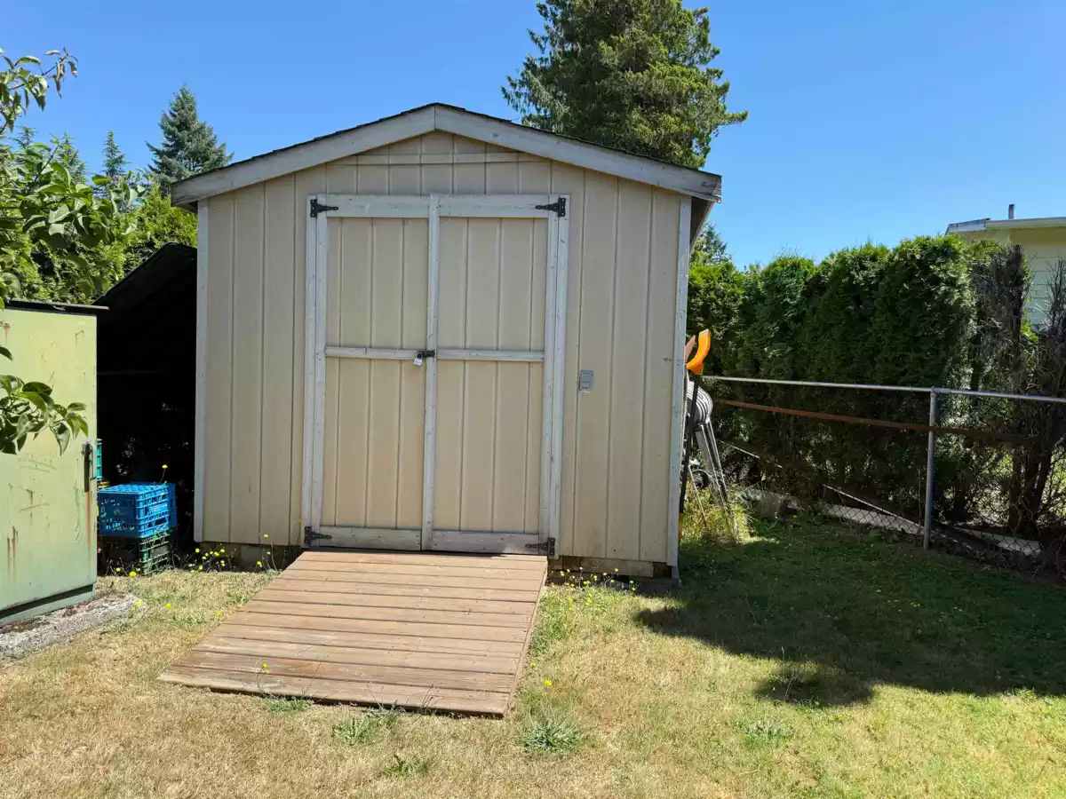 LANGLEY GROVE ESTATES - Ideal location between Langley, Murrayville, Otter Coop and Aldergrove. This immaculate and updated bright 2 bdrm is located in a quiet tucked away spot backing onto open lawn space. Spacious galley kitchen with window and lots of cupboards, large dining area with builtins for more storage and archway to large living room with bay window. Full size w/d, large master with doorway to huge main bath with soaker tub, double sinks and separate shower. Light bright paint and hardwood floors make this welcoming and cozy. Large covered deck for bbqing and relaxing, separate garden shed and fenced backyard complete your new home space. This great park features Rec/exercise centre, clubhouse, sauna, hot tub, rv rental spots and more. PET FRIENDLY AND NO AGE RESTRICTIONS !!!