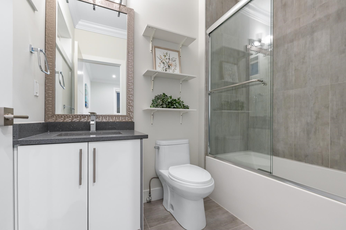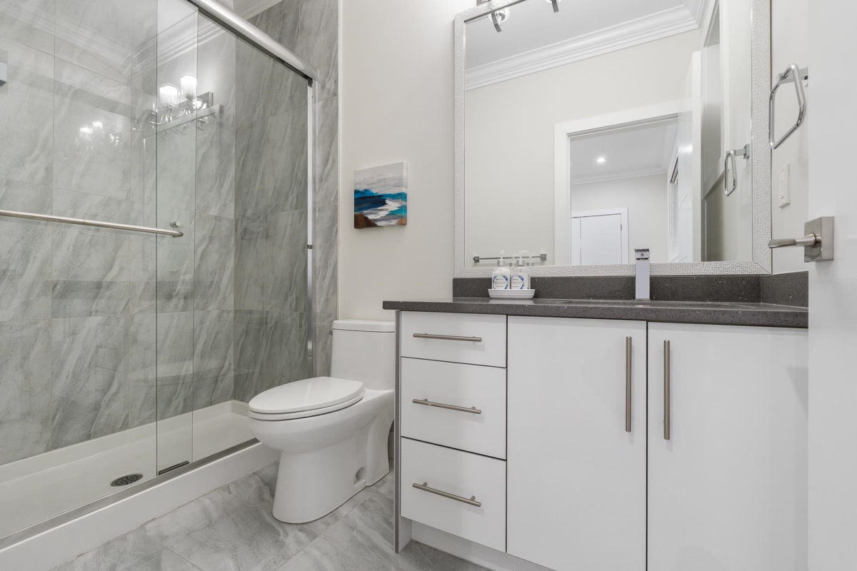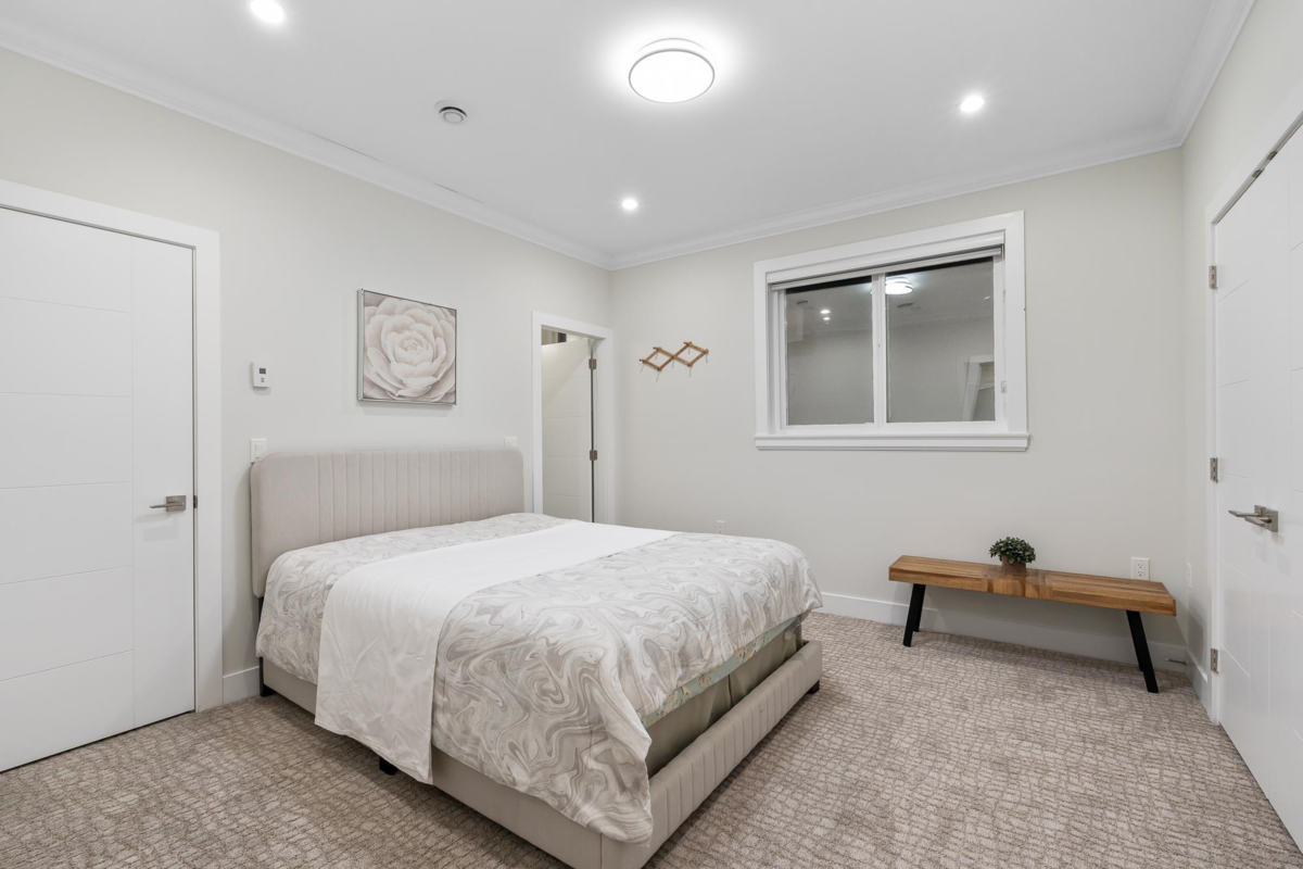 Elegant 2-storey luxury 6-bedroom home in Fraser Heights featuring a 2-bedroom side suite—ideal for extended family or a premium mortgage helper. Radiant heating with tile and laminate flooring throughout. A thoughtfully designed open yet functional layout offers spacious living and dining areas, a gourmet kitchen with stainless steel appliances, and a cozy family room on the main level. Upstairs showcases a lavish primary bedroom with a spa-inspired ensuite, plus three additional ensuite bedrooms. The side suite includes a private entrance for added exclusivity. Laneway access to a 2-car garage with ample additional parking. Walking distance to top schools, recreation centre, and shopping, with easy access to Hwy 1.