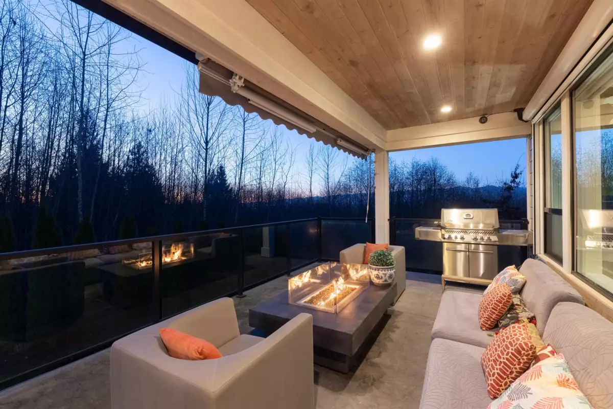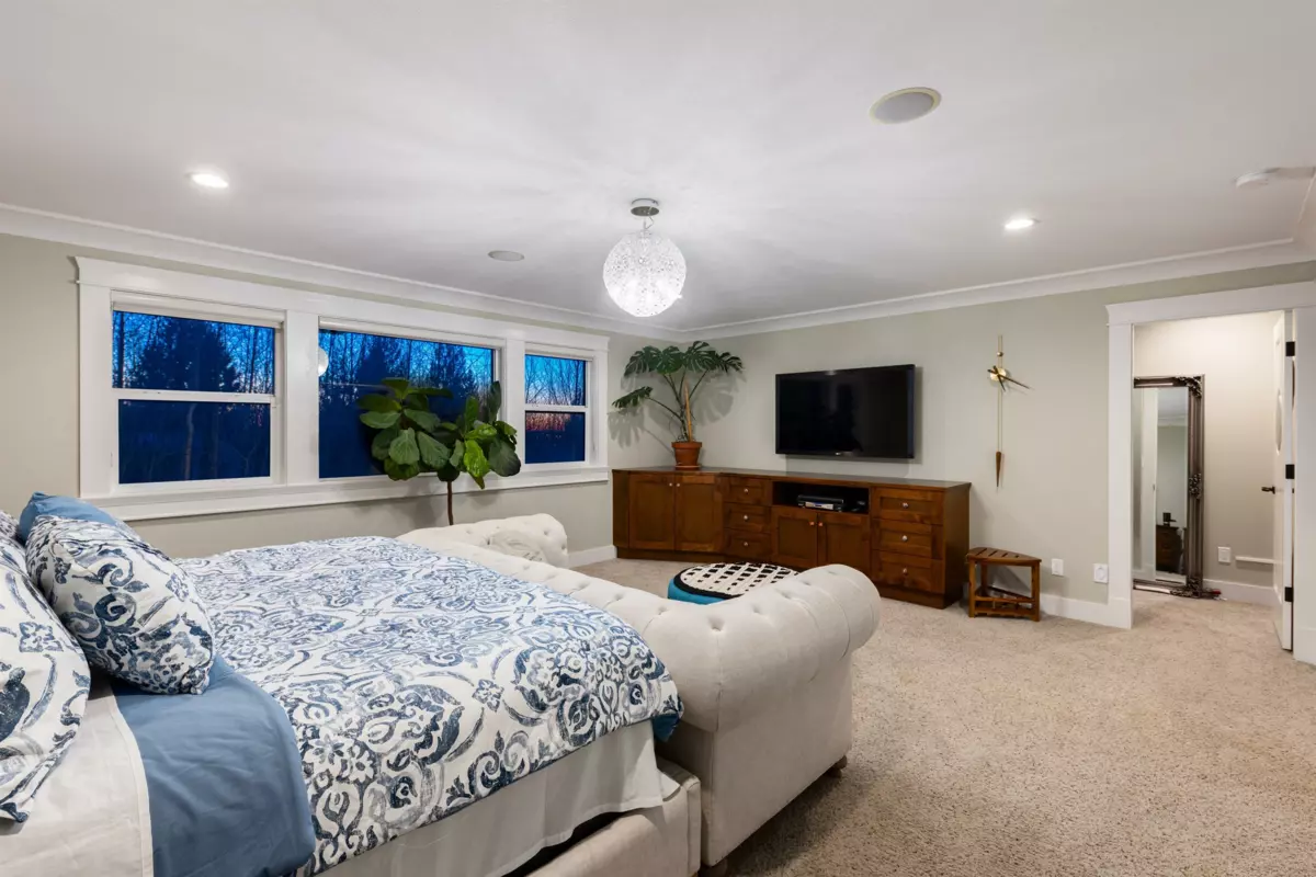 Exquisite 4,598 sq ft custom home in prestigious Grant Hill Estates on a private 16,466 sq ft lot with stunning Golden Ears Mountain views.The main level features a chef-inspired open kitchen and wok kitchen with Wolf&Sub-Zero appliances and oversized granite island,plus a dedicated music room.Open living and dining areas lead to a covered sundeck with gas fire table.Enjoy a beautifully landscaped yard with level lawn, mature hedging and excellent privacy.The primary bdrm offers a walk-in closet and ensuite.Upper level includes a self-contained 2-bdrm suite and den.Lower level features a wet bar,media room,library,2 bdrms,2 baths and separate entry.Triple bay garage,detached workshop,smart home security,RTI audio,electric shutters and water filtration system complete this exceptional home.