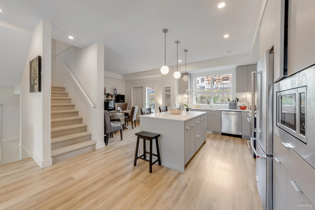 Stylish and functional, this Hungerford Properties townhome offers 4 bedrooms, 4 baths, and West Coast contemporary design in the vibrant South Grandview area. Highlights include a sleek island kitchen, high ceilings, a main-floor powder room, and a bonus lower-level bedroom with a full bath, perfect for guests or a home office. The spacious master suite features a walk-in closet and private ensuite with double sinks. Additional perks include a double garage with epoxy flooring, forced-air heating, central air, and an expansive rooftop deck for sunset views.
