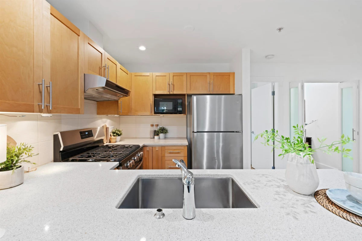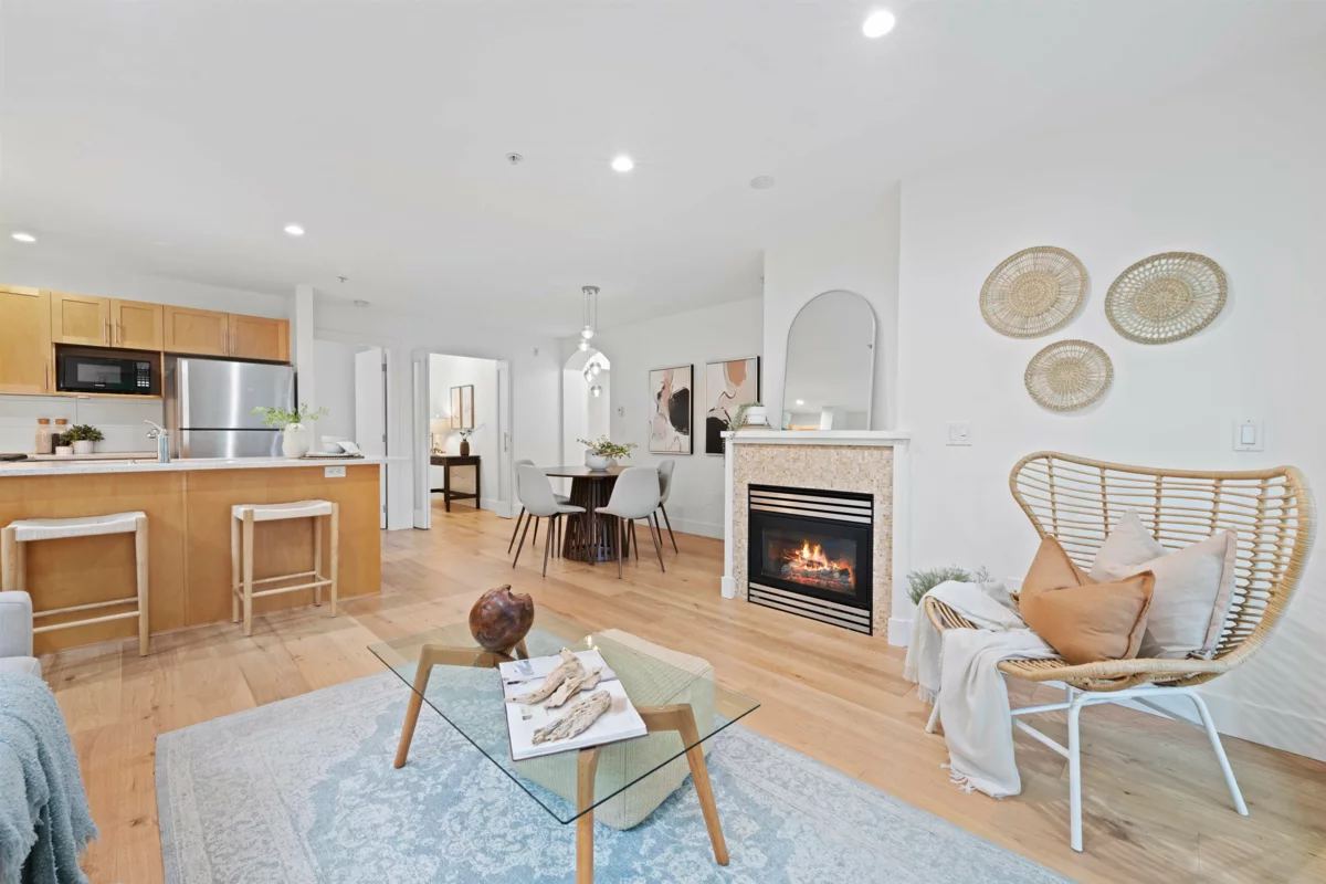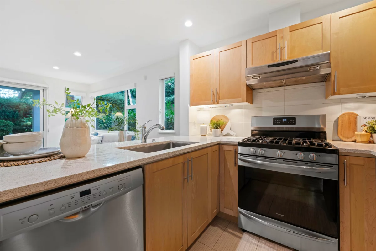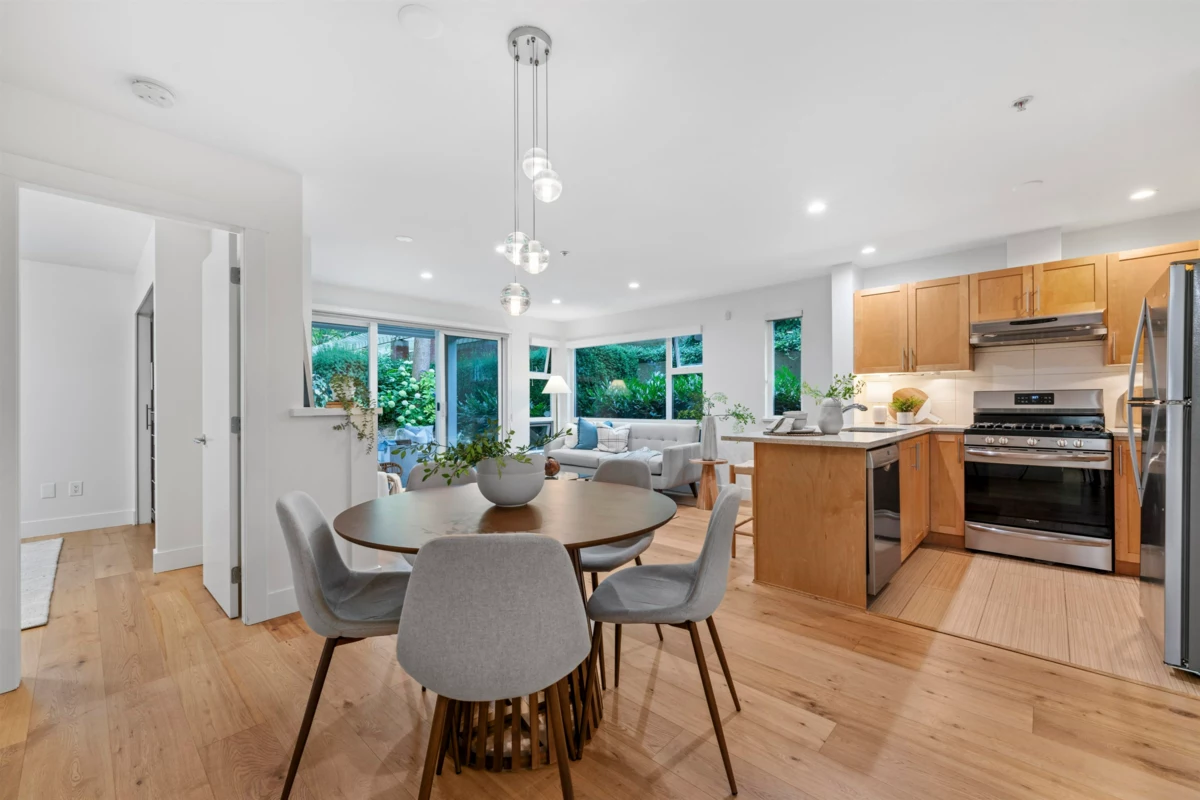 PRIME KITSILANO location at GREENWICH WEST by Polygon! Corner unit 2 BR PLUS FLEX/DEN garden suite with direct access to private gated yard gives a townhome feel. Perfect blend of comfort and style with oversized windows, white-oak floors, gas fireplace, SS appliances including gas range, quartz counters, in-suite laundry and tons of storage. Large patio surrounded by mature trees and garden in a park like setting. Meticulously managed building located steps to Granville Island, Kits Beach, Arbutus Greenway, 5th Ave Cinema, & all the best restaurants/shops Kits has to offer. Central location, close to transit, with easy access to Downtown, UBC & Richmond. Pets welcome! Maintenance includes HW and Gas. Comes with 1parking and storage.