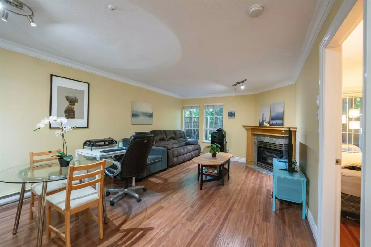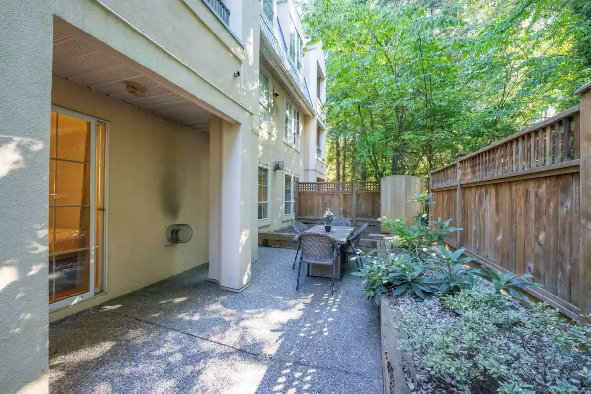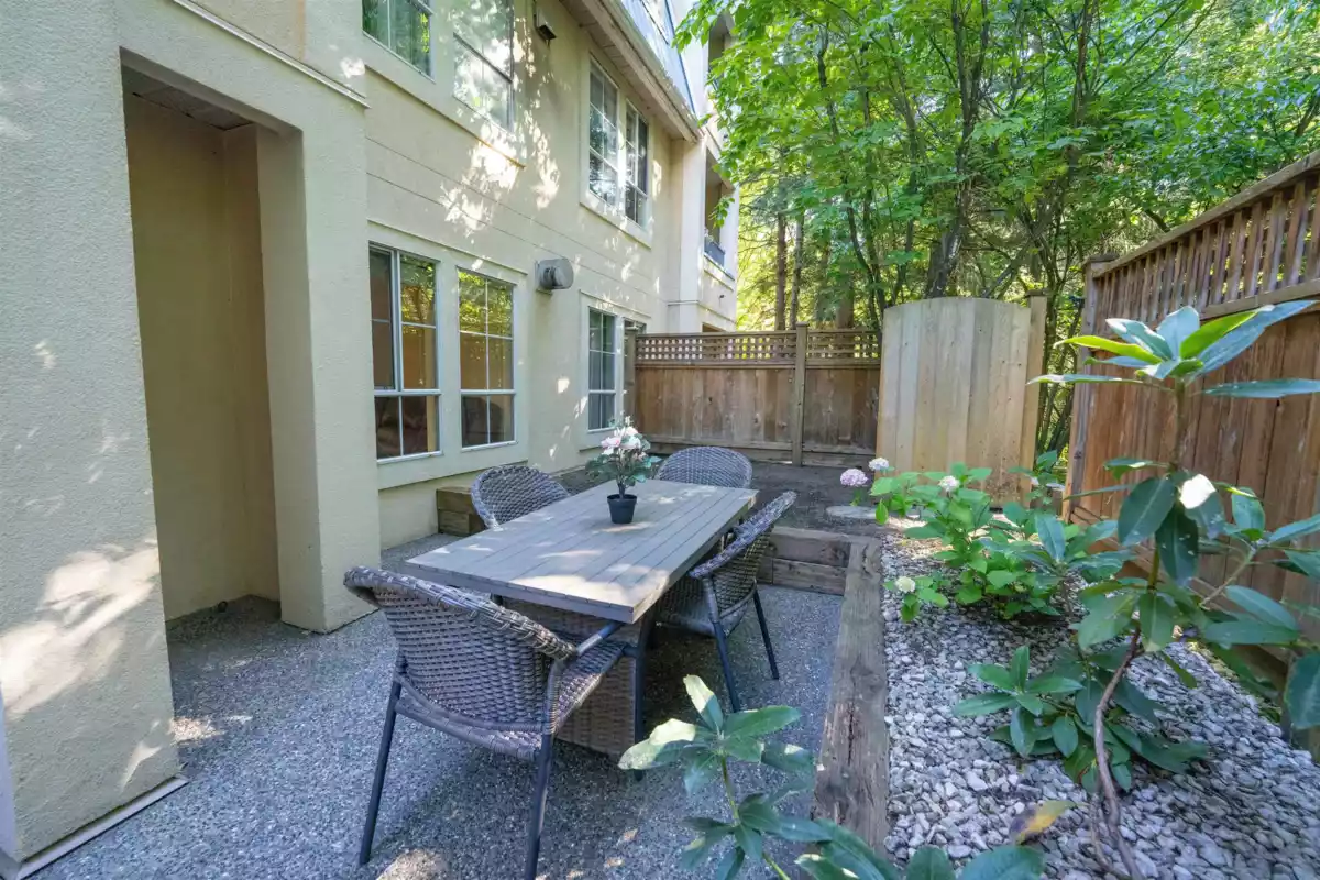 This open concept floorplan boasts one of the largest 1bed 1 baths in the building. The kitchen features S/S appliances, Granite countertops and bamboo flooring. In suite laundry with storage. Large bedroom with attached walk in closet leads into ensuite bathroom with heated floors and soaker tub. Relax in front of a cozy fireplace in the main living area. Spacious main floor patio for BBQ’ing, outdoor dining and living. Private Fully fenced yard safe and secure for pets and children. Close to Schools, Parks, Shopping, movie theatre, restaurants. Comes with 1 parking 1 storage and bike room. Ev charging outlet with oversized parking stall. Underground visitor parking. Rentals allowed