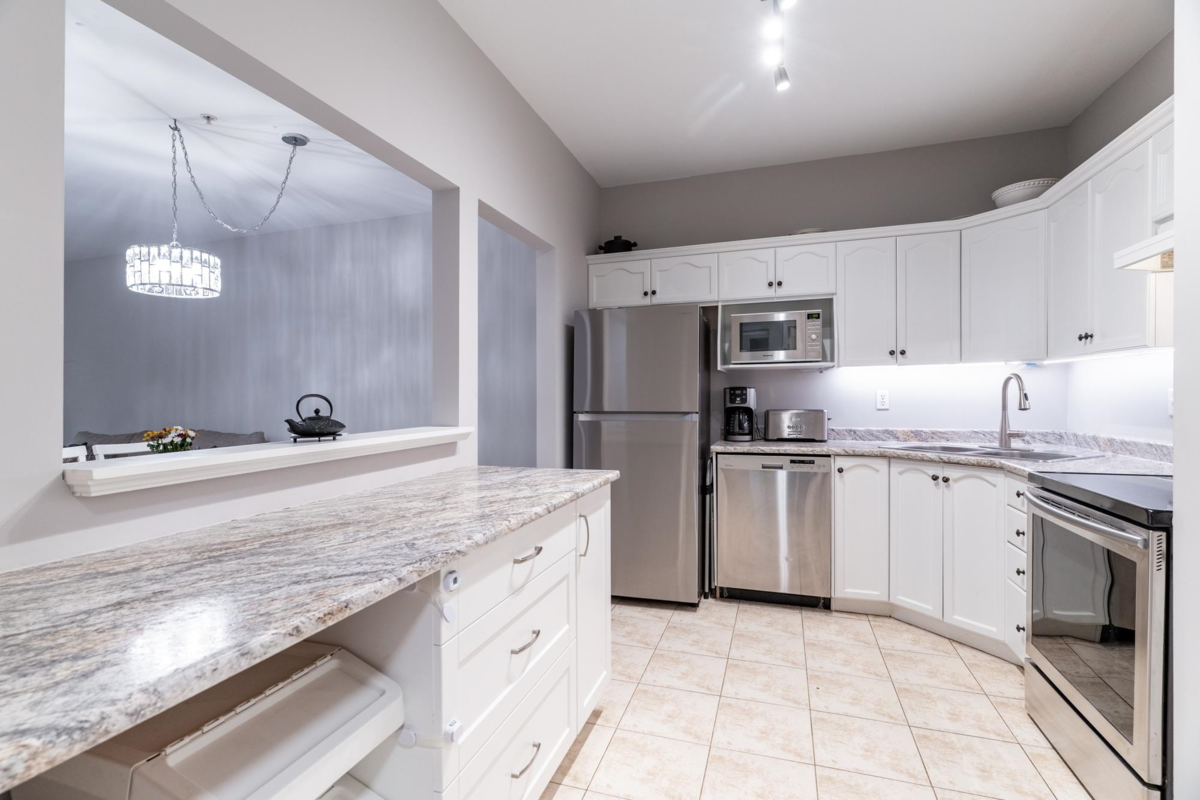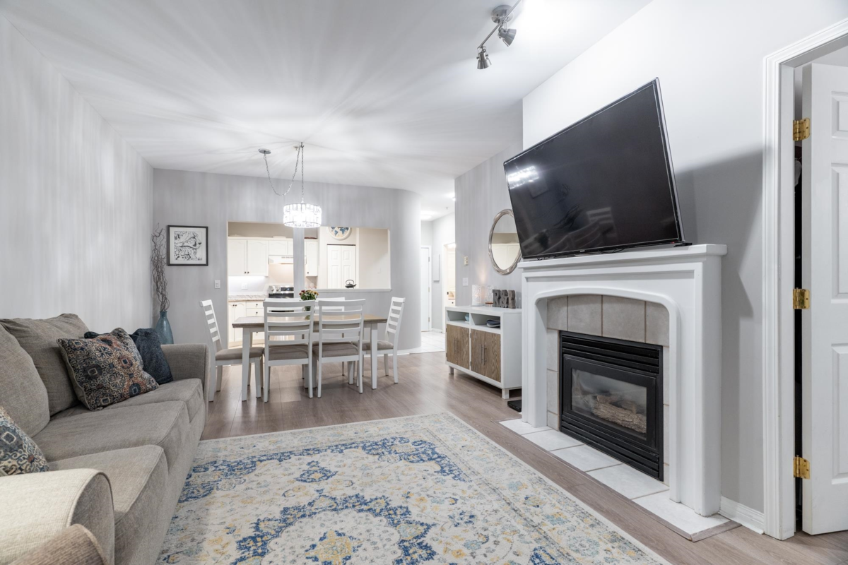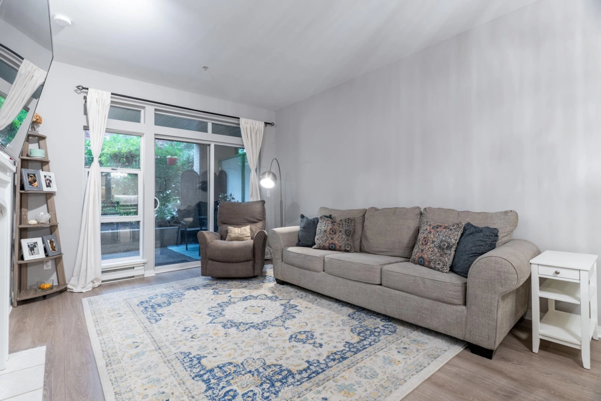 Located in the heart of Port Moody, this 2-bedroom ground-floor home at The Heritage Grand offers 867 sq. ft. of comfortable, functional living with 9' ceilings and generous natural light. The layout is practical and welcoming, with laminate flooring throughout the main living areas and bedrooms and a kitchen equipped with stainless steel appliances. Step outside to a 129 sq. ft. covered patio, a great extension of the living space for relaxing or entertaining year-round. Enjoy a highly walkable lifestyle just steps to shops, Rocky Point Park, trails, and the Evergreen Line. The building is fully rain-screened, well managed, allows two pets, and the home includes two parking stalls. Open Saturday, Jan 31 2-4