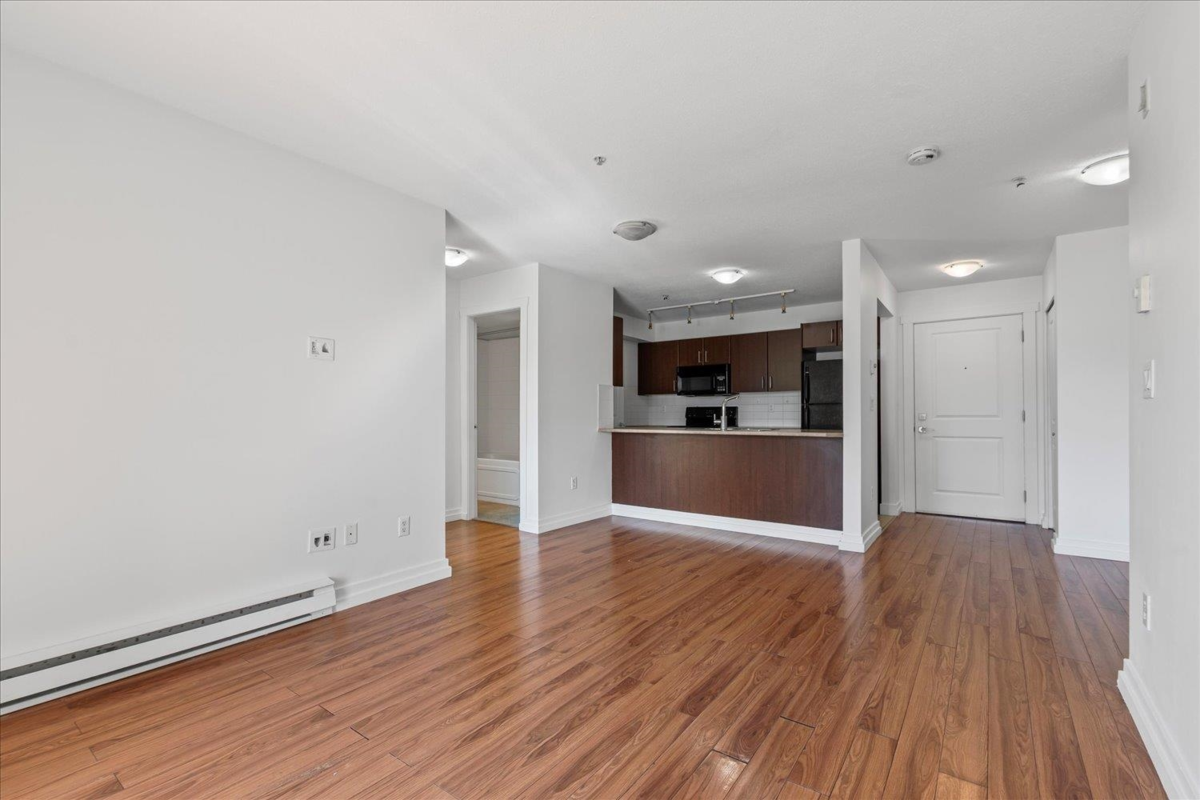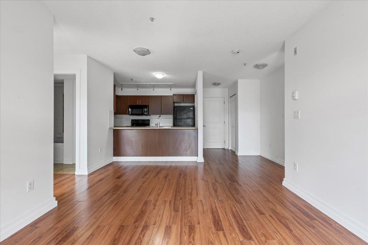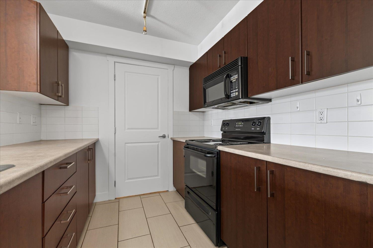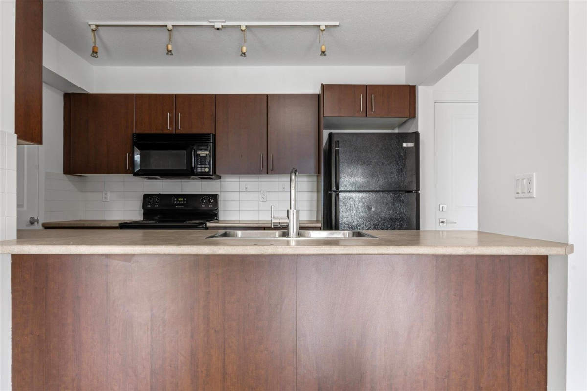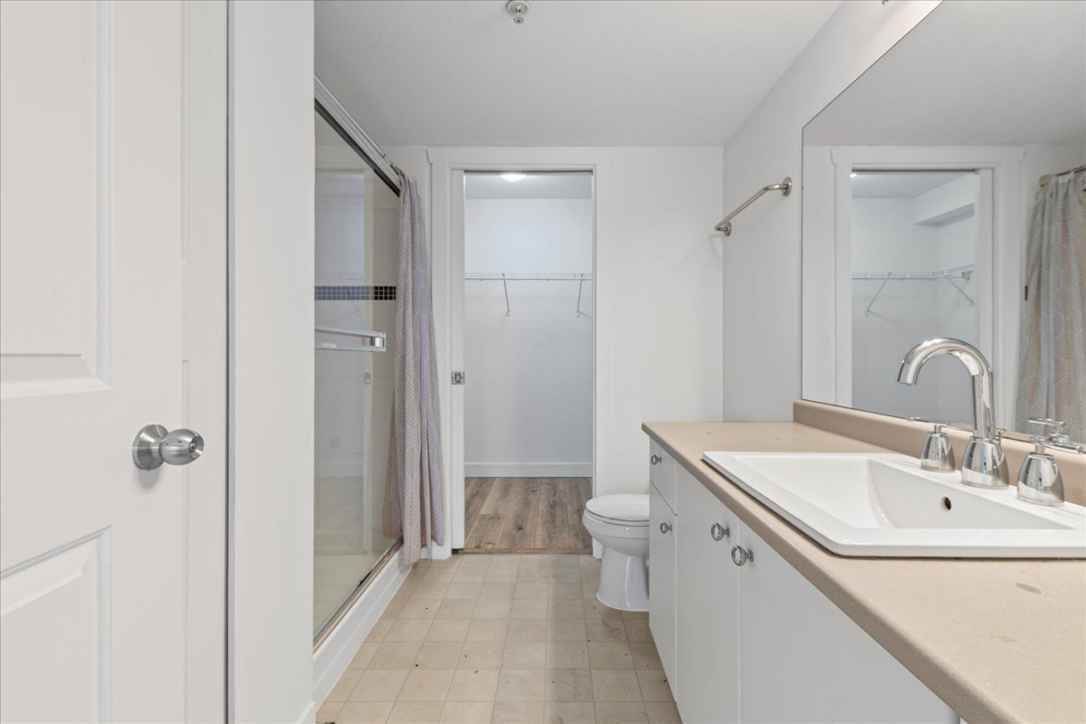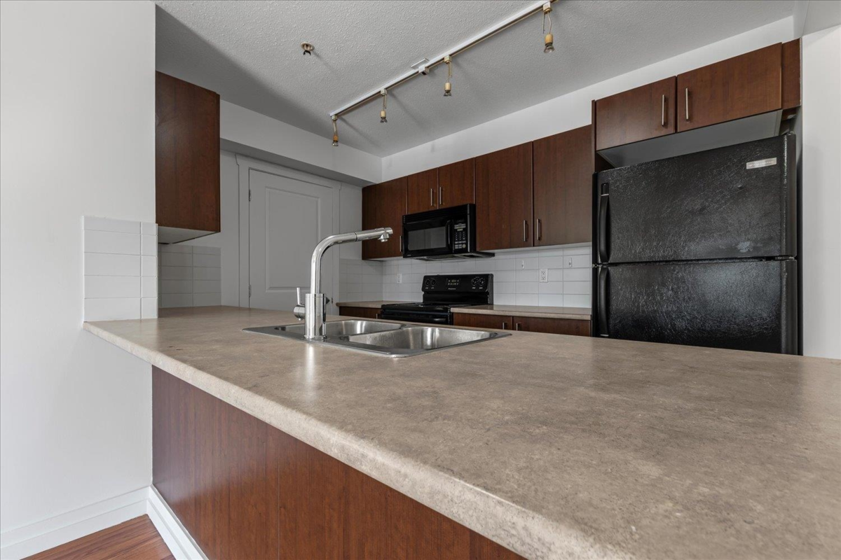 Welcome to The Vibe! This main floor 2 bed, 2 bath condo offers a bright and functional layout with bedrooms on opposite sides for privacy. Features include an open kitchen with eating bar, in-suite laundry, and a spacious patio with easy access. The well-maintained building includes secure underground parking, storage locker, and a fitness room. Convenient location near shopping, dining, and easy highway access. Ideal for first-time buyers or investors. Rentals allowed, pets welcome with restrictions.