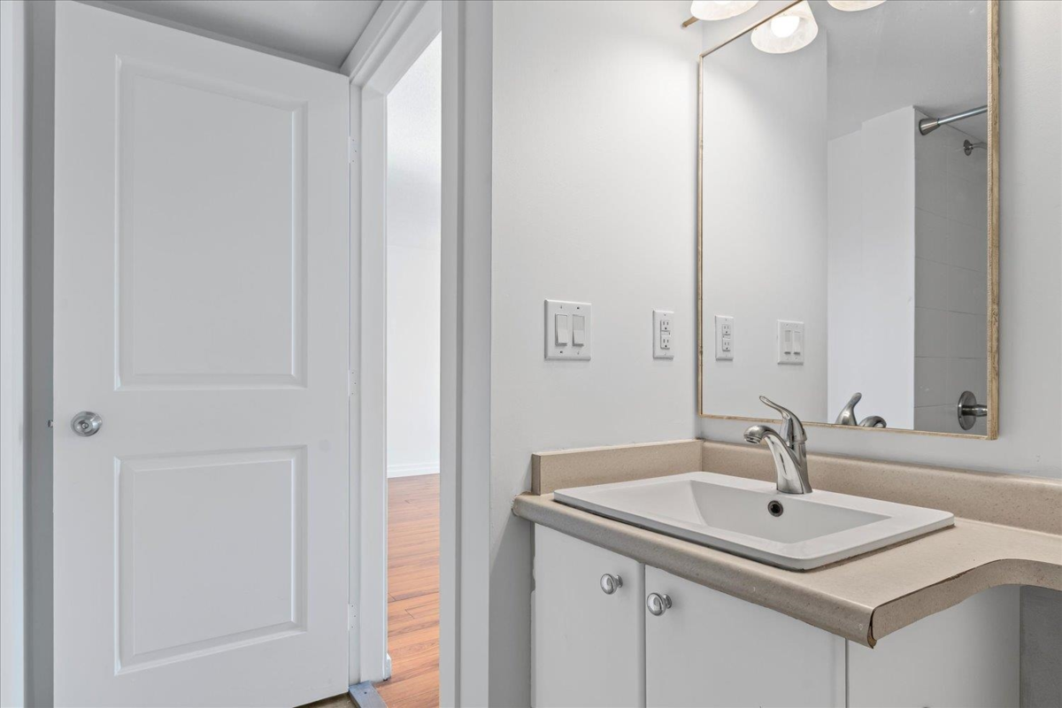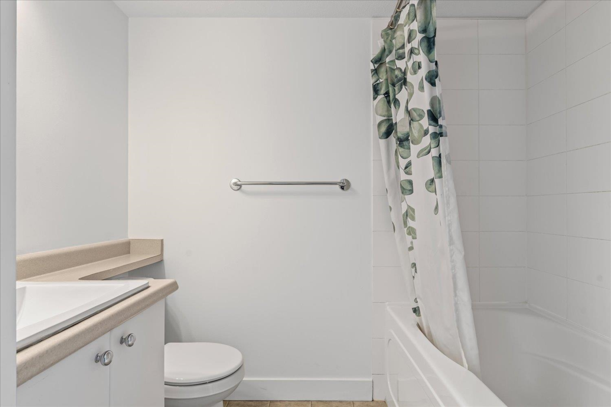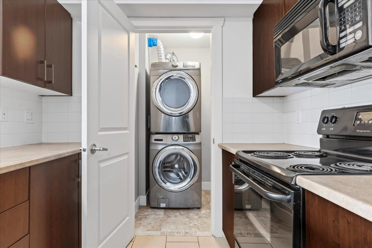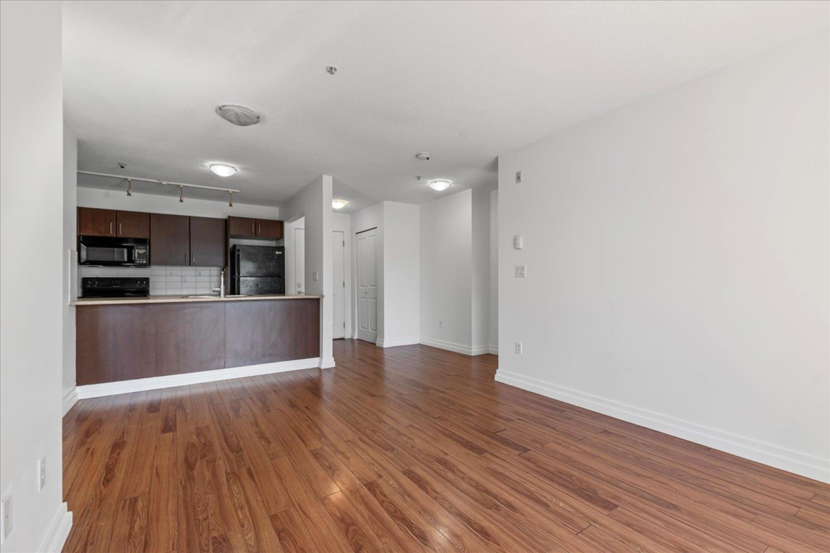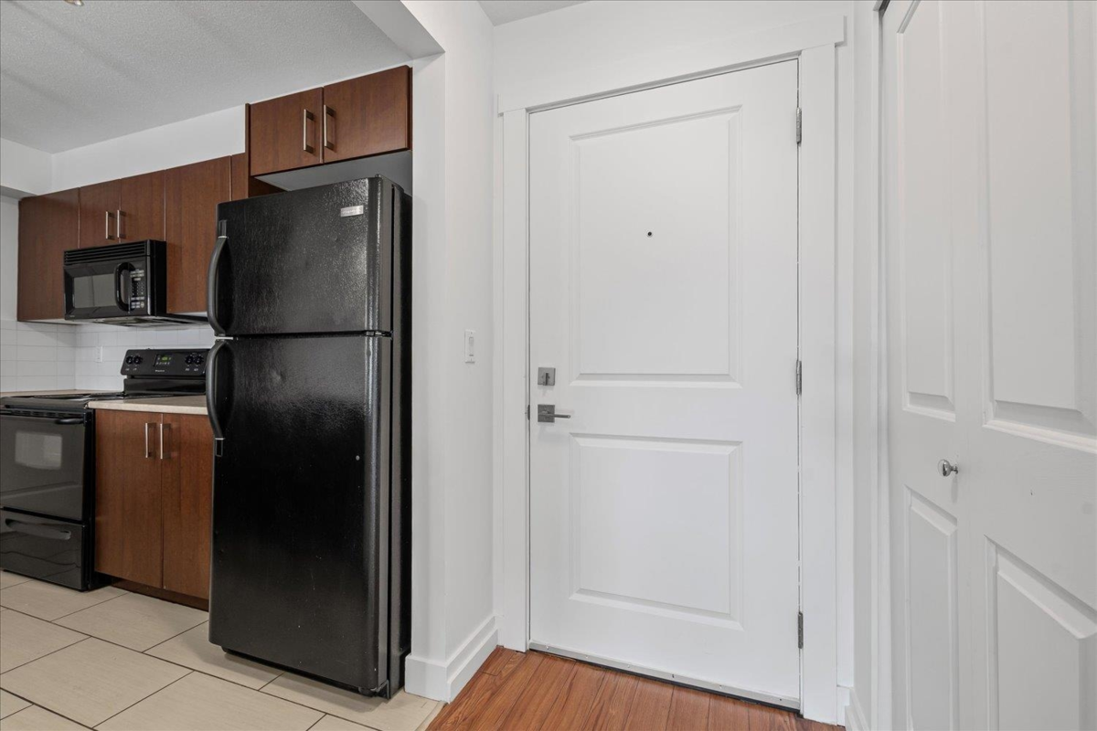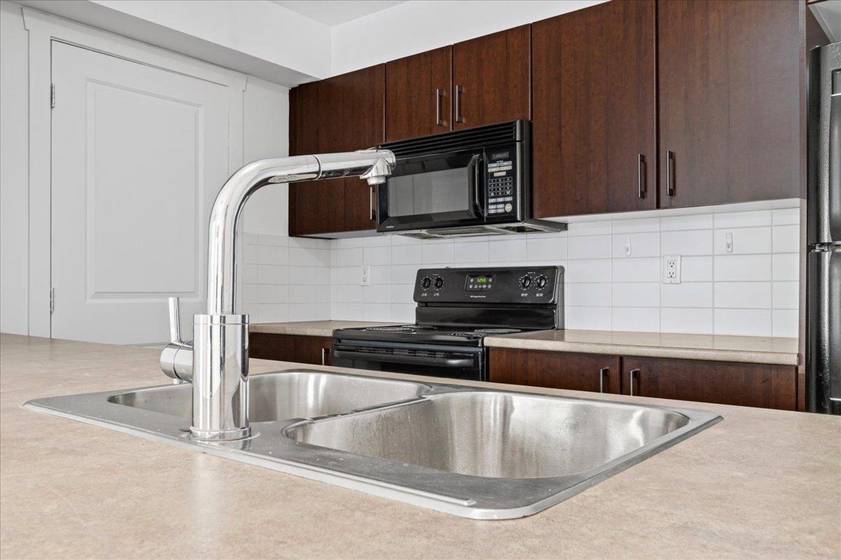 Welcome to The Vibe! This main floor 2 bed, 2 bath condo offers a bright and functional layout with bedrooms on opposite sides for privacy. Features include an open kitchen with eating bar, in-suite laundry, and a spacious patio with easy access. The well-maintained building includes secure underground parking, storage locker, and a fitness room. Convenient location near shopping, dining, and easy highway access. Ideal for first-time buyers or investors. Rentals allowed, pets welcome with restrictions.