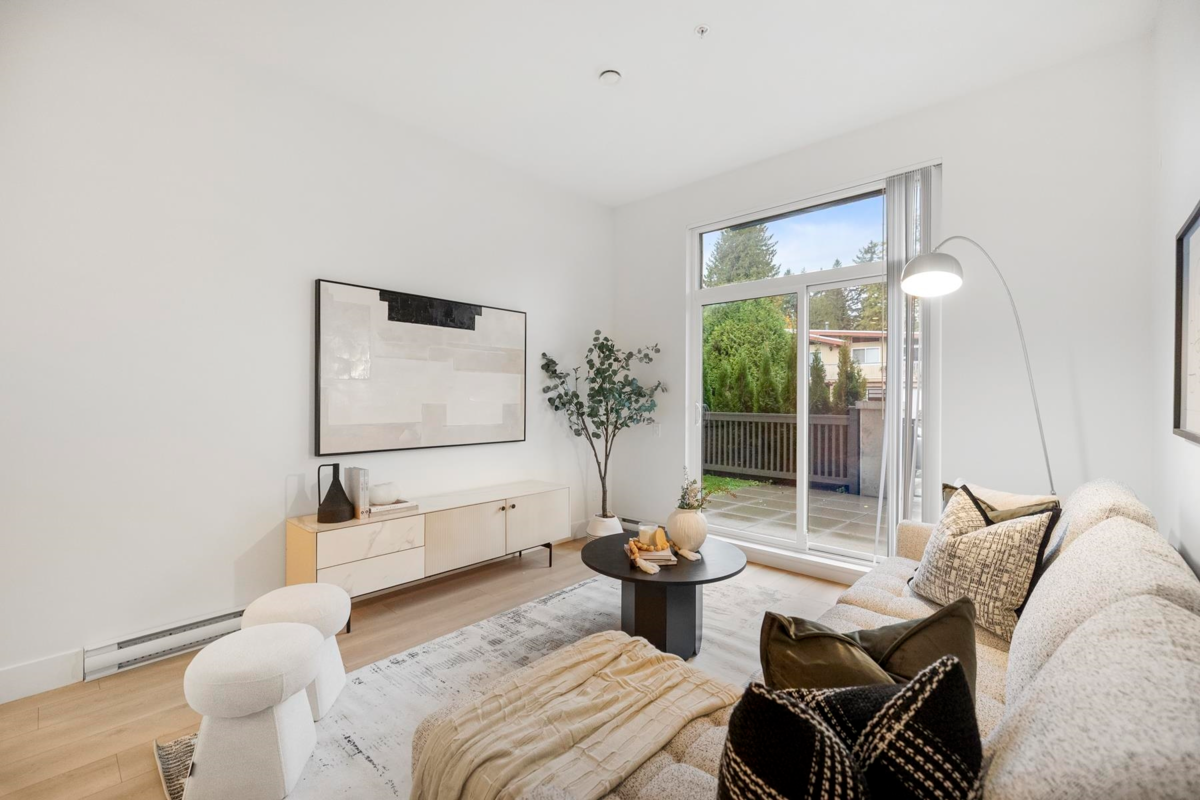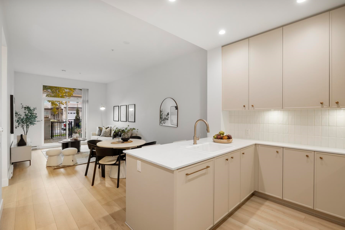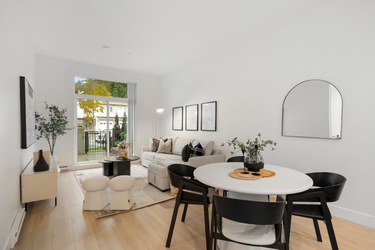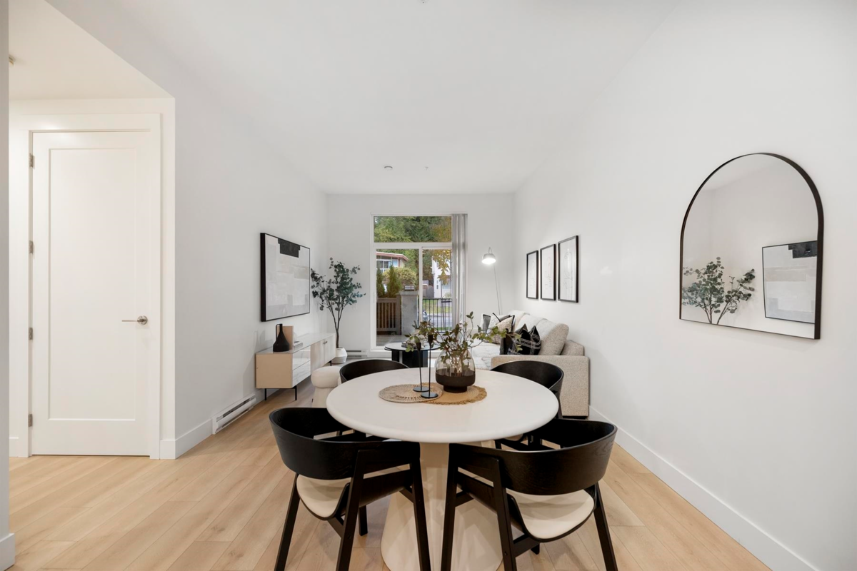 ALLISON by MOSAIC – This rare ground-level 1 bed + den home stands out with its 375 F private patio yard & own front entrance — offering true townhouse-style living on a quiet, tree-lined street - walking distance to Lougheed mall & Skytrain. Enjoy 10-ft ceilings, a spacious open layout perfect for full-size furniture. The den is large and functional and the designer kitchen comes with stainless steel appliances. Built by an award-winning Mosaic, featuring premium laminate flooring. Located minutes from Lougheed & Braid Stations, H-Mart, Superstore, IKEA, and Lougheed Shopping Centre. Includes 1 parking (#78) and a large storage locker (#20).
