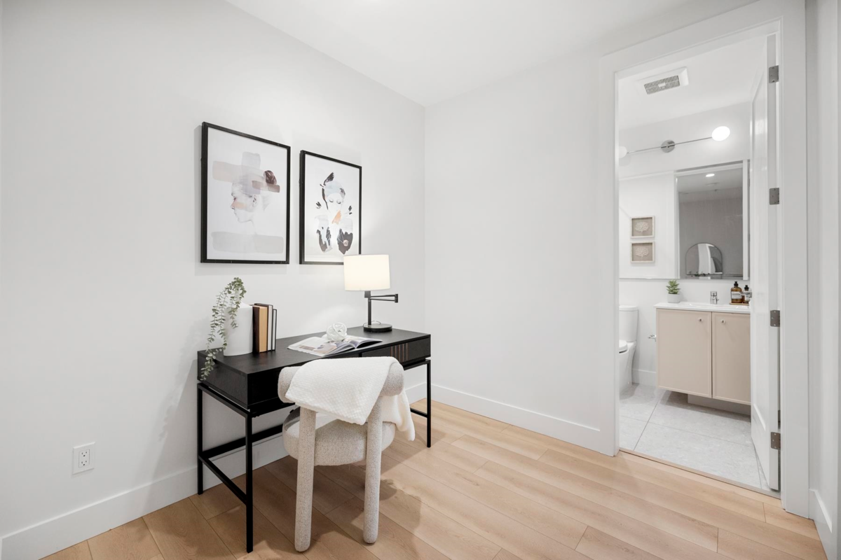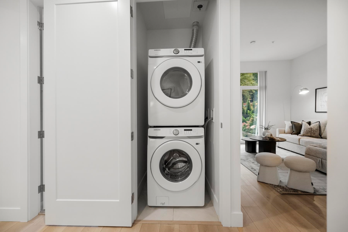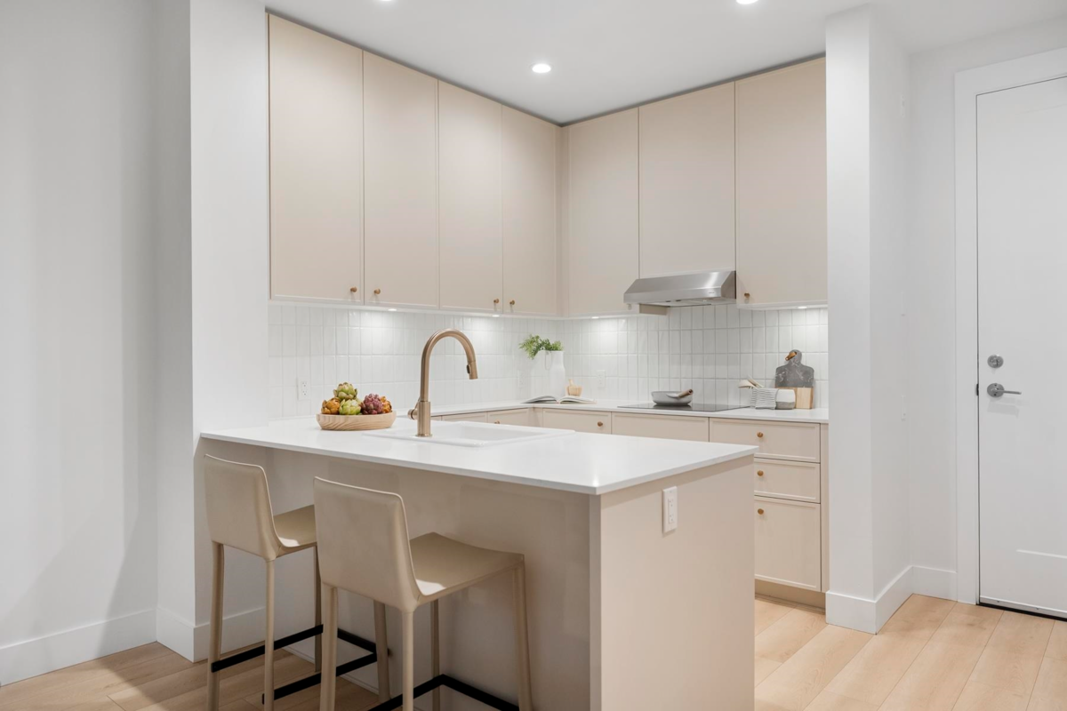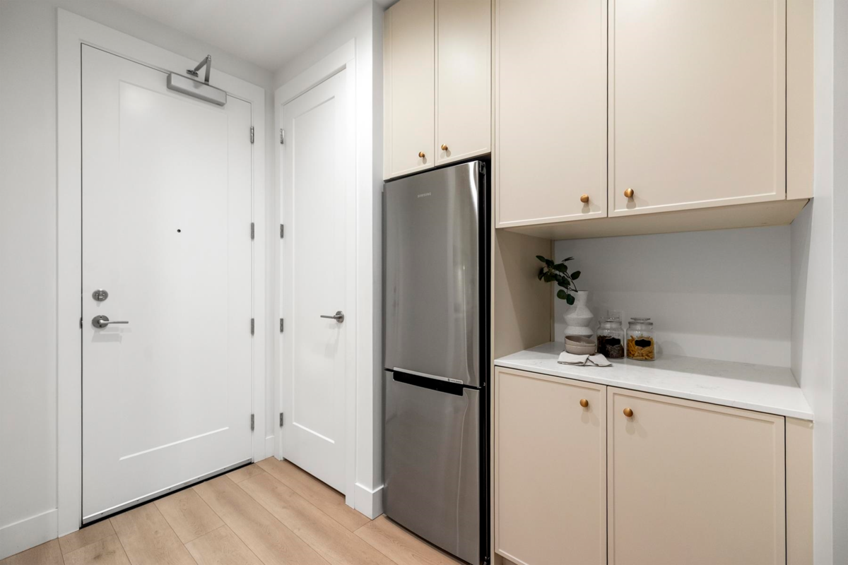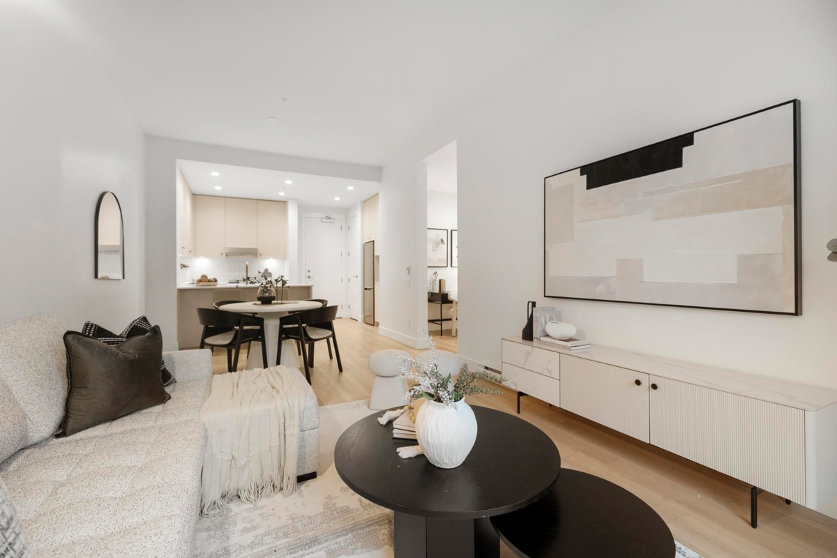 ALLISON by MOSAIC – This rare ground-level 1 bed + den home stands out with its 375 F private patio yard & own front entrance — offering true townhouse-style living on a quiet, tree-lined street - walking distance to Lougheed mall & Skytrain. Enjoy 10-ft ceilings, a spacious open layout perfect for full-size furniture. The den is large and functional and the designer kitchen comes with stainless steel appliances. Built by an award-winning Mosaic, featuring premium laminate flooring. Located minutes from Lougheed & Braid Stations, H-Mart, Superstore, IKEA, and Lougheed Shopping Centre. Includes 1 parking (#78) and a large storage locker (#20).