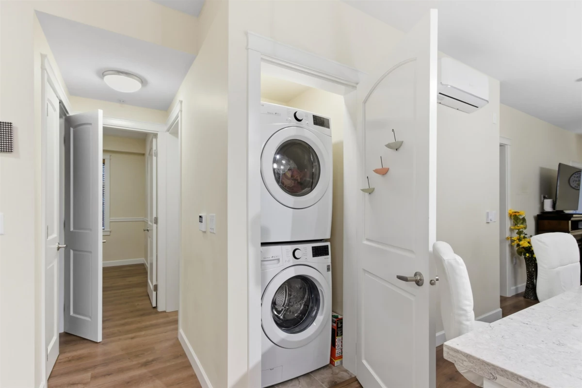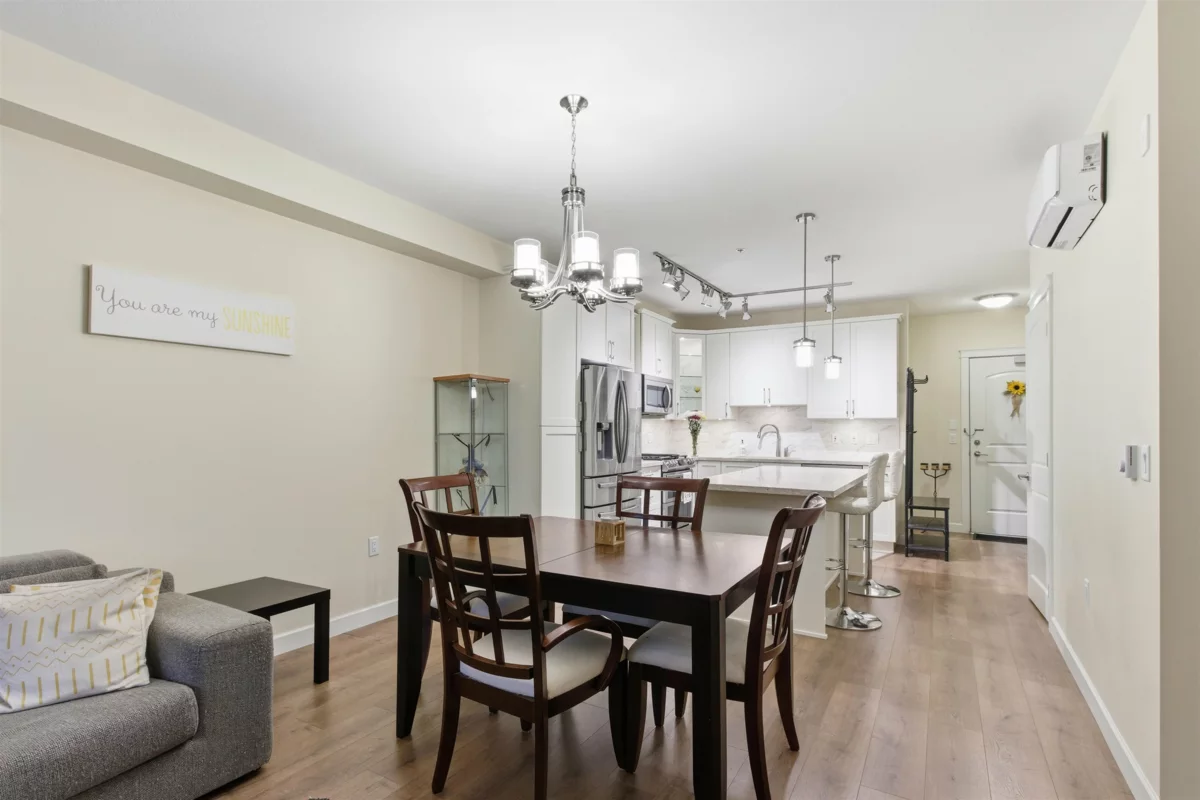 Prime location with unmatched convenience! This bright, spacious 3-bed/2-bath condo offers superb accessibility, including wheelchair-friendly features and proximity to Carvolth Exchange, schools, and shopping. Ideal layout features a fully private solarium with no street access, perfect for all weather entertaining. Gourmet kitchen shines w/ Samsung appliances and a 5-burner gas cooktop, complemented by a natural gas BBQ hookup. Stay comfortable year-round with a high-efficiency multi-zone heat pump system for air conditioning. This unit includes two parking spots- one with extra side access space, and a large, secure concrete-walled storage garage. Pet-friendly (max two cats or dogs). Easy access to Hwy 1. Balance New Home Warranty. Recreation facility usage & Quick possession available.