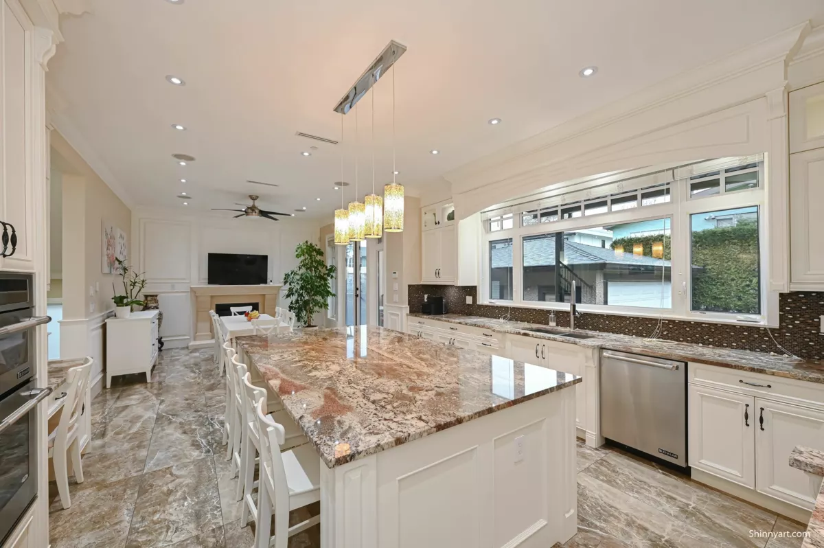 South facing luxury built top quality 3 level home on the high side corner lot of East 55th Avenue & Ross Street. Legal 2 bedroom basement suite (7089 Ross St.) with potential $2800/ month mortgage helper. Main floor: high ceiling, grand foyer and a den, designer cabinets and gourmet kitchen with massive island, and spice kitchen & covered deck. 2 gas fireplace, radiant floor heating, AC and HRV home.