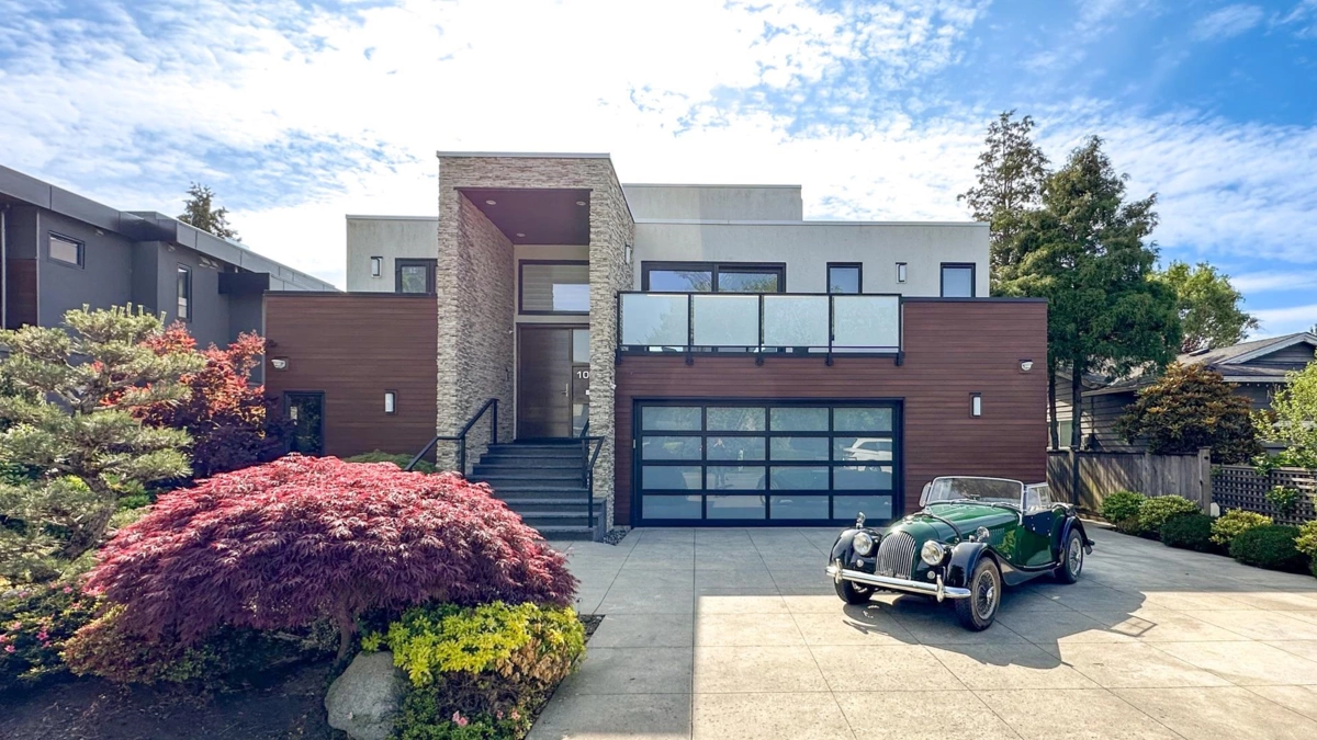 Waterfront property w/ spectacular sunset views—designed by award-winning architect & artist Marko Simcic, recipient of the AR Award, Canadian Architect Award & Lieutenant Governor’s Award. This architectural masterpiece features 15' ceilings, floor-to-ceiling engineered glazing, a dramatic 16-ft rebar feature, and seamless indoor-outdoor living w/ 2 spacious balconies. The gourmet kitchen offers a large island, Miele appliances, wine cooler, & quartz countertops—perfect for entertaining. Includes 3 ensuite bedrooms plus 2 flexible rms for office/guests, tiled floors, motorized blinds, A/C, and a beautifully landscaped 6,000+ sq ft lot w/ private yard & oversized garage. Steps to the dyke and Fisherman’s Wharf. Close to Steves Elementary, McMath (French Immersion), and Boyd Secondary.