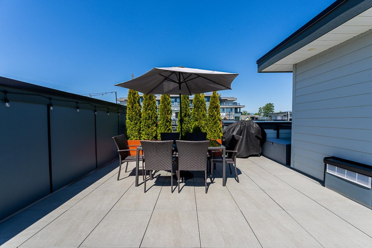 Welcome to the ever popular Cinema District! This stunning modern 3-bed, 3-bathroom townhouse in Abbotsford’s University District features an open concept main living area, with quartz countertops, stainless steel appliances, and includes A/C and a massive roof top patio with breathtaking views of Mt. Baker. Featuring a 2-car garage with access to your own private backyard, perfect for pets or someone with a green thumb to grow their own vegetables. Located within walking distance of the University of the Fraser Valley, Rogers Forum, McCallum Junction shops and restaurants, and Highway 1 for commuters. This one is not to be missed!