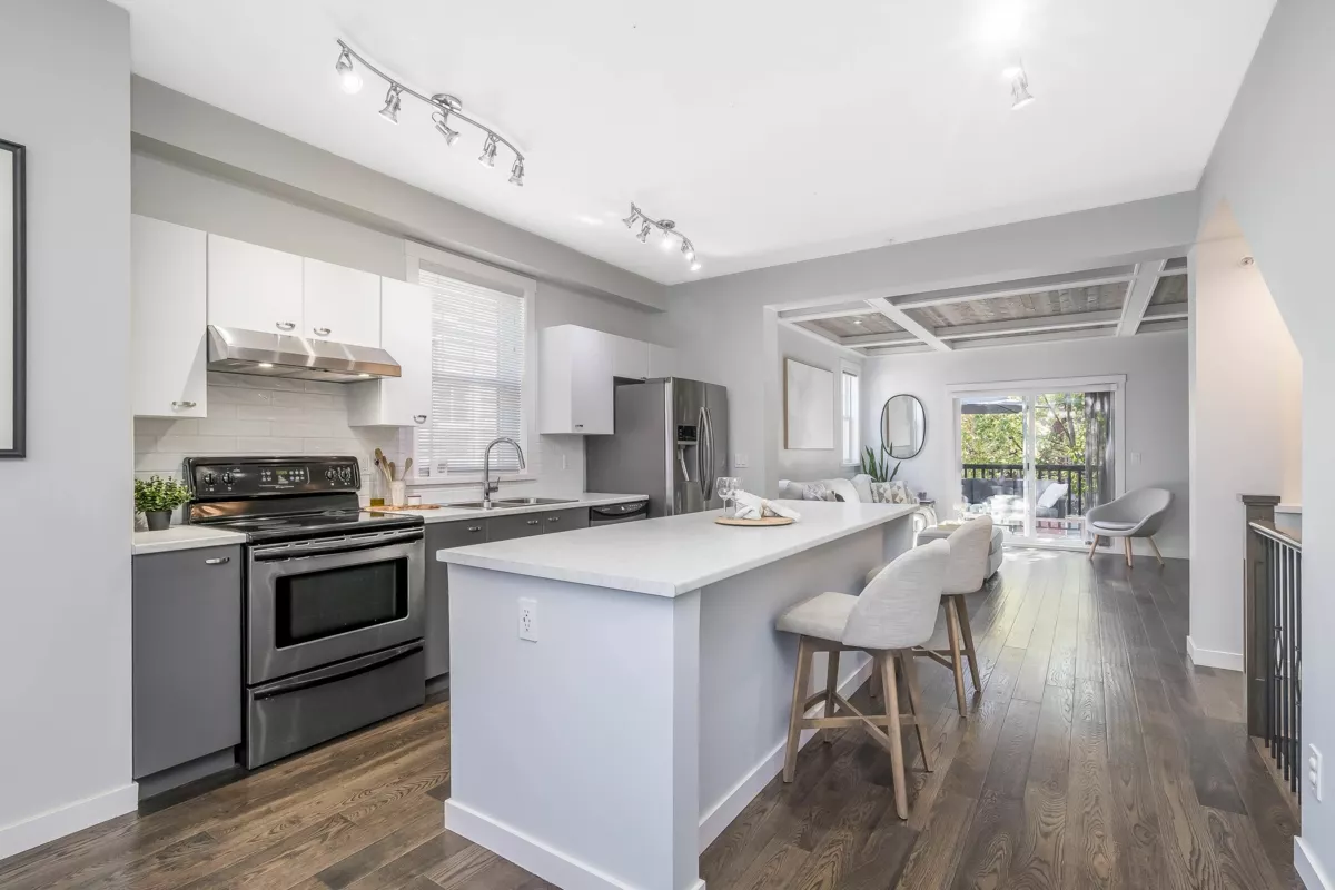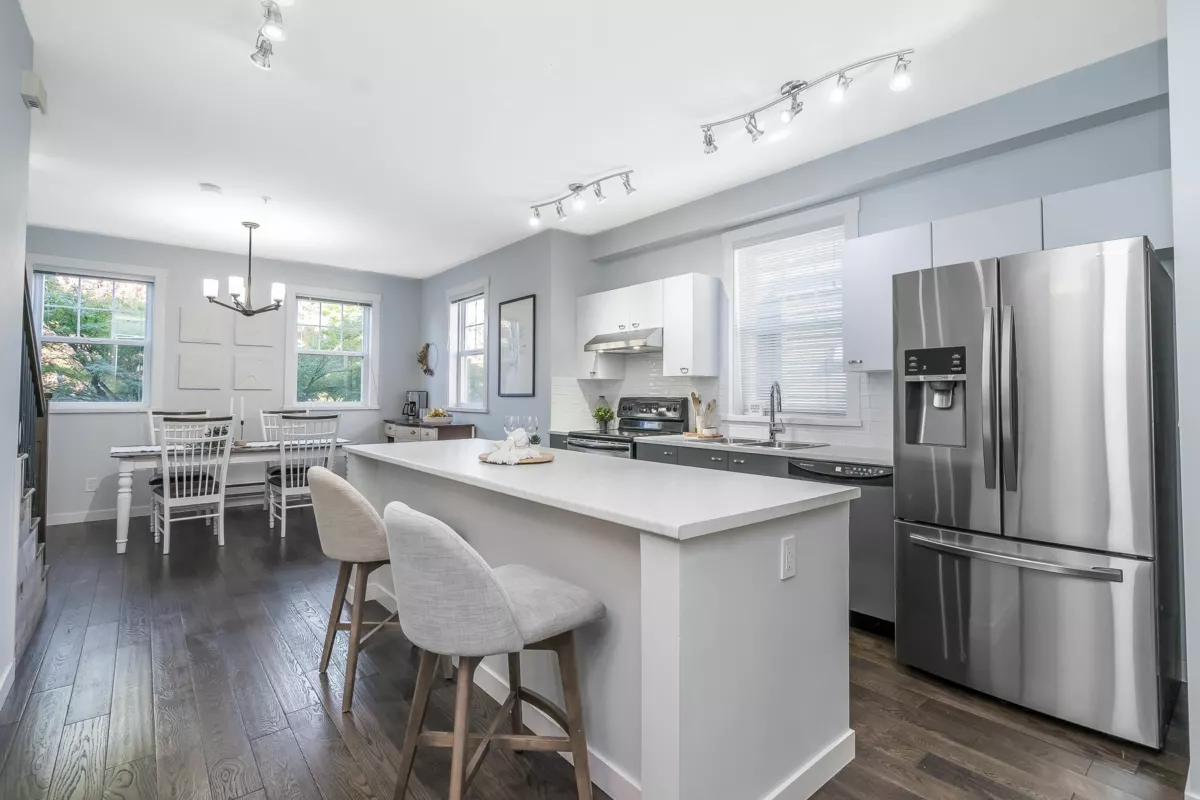 FORMER END UNIT SHOWHOME IN SOUGHT AFTER COHO! This beautifully maintained 3 bedroom plus den townhome features custom finishes and thoughtful upgrades throughout. The open concept main floor offers a spacious living area and an upgraded kitchen with premium cabinetry and designer details. Upstairs are two generous bedrooms, including a bright primary with an updated ensuite. The entry level includes a third bedroom and a versatile den, perfect for a home office or guest room. Located steps from trails, parks, and amenities, this home combines style, comfort, and convenience in one of the area's most desirable communities. Garage, front, visitor, and street parking are all available!